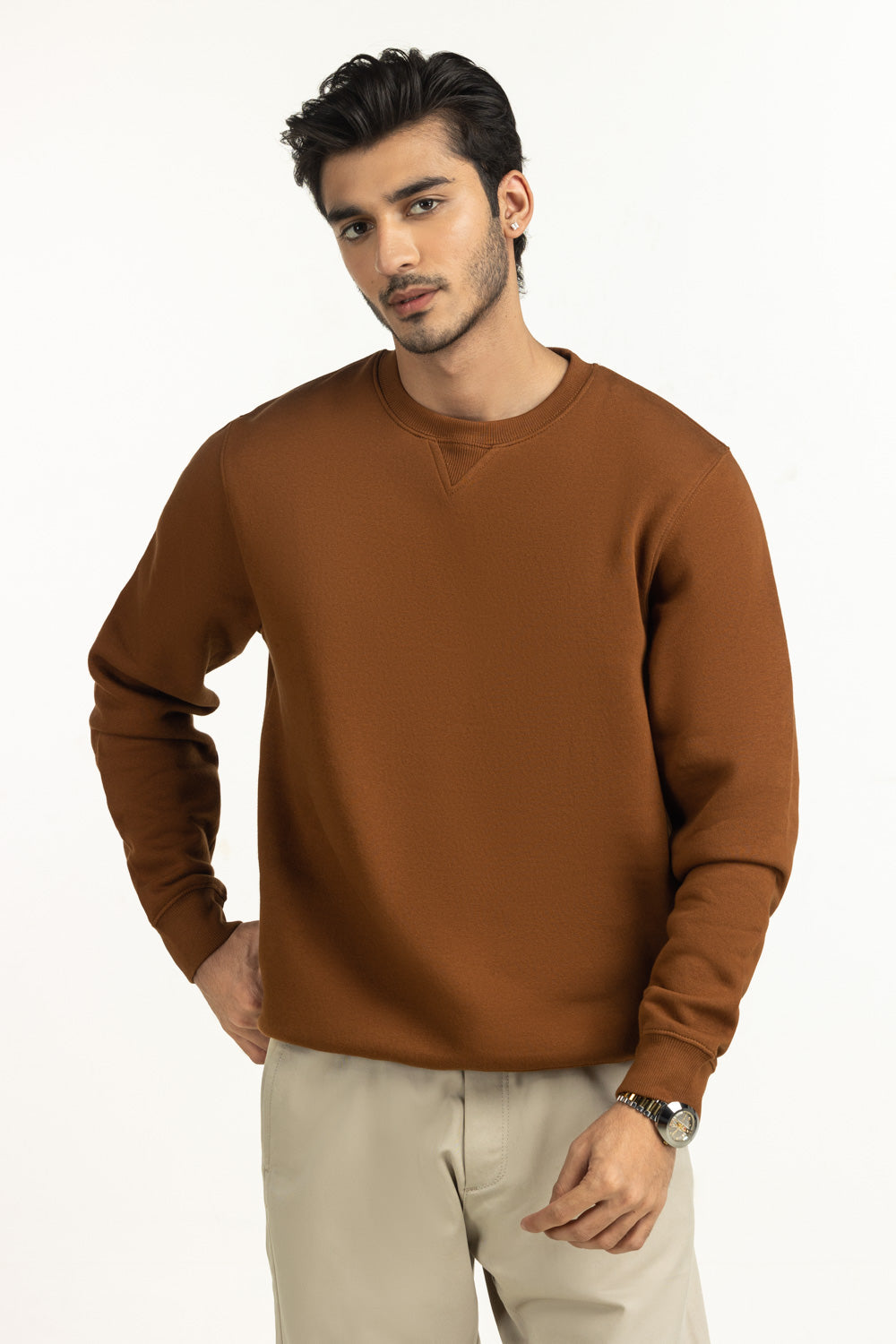 This sweatshirt in burnt brown hue offers warmth with a modern appeal. Its embossed design at the back sets it apart, giving character to a classic winter essential. With a regular fit and plush texture, it keeps you at ease through the season.