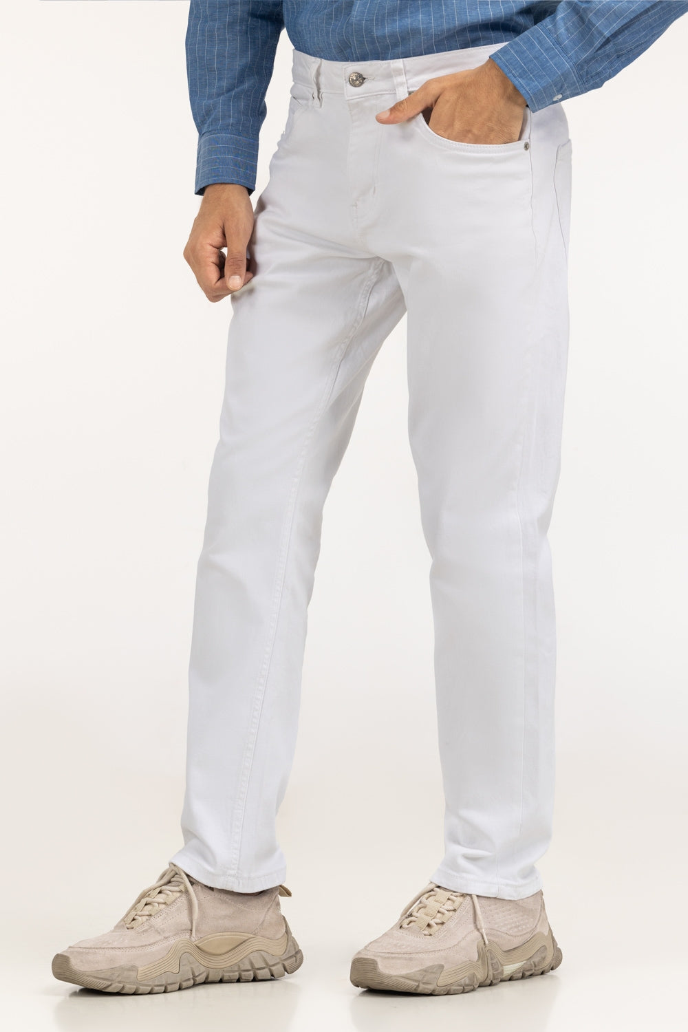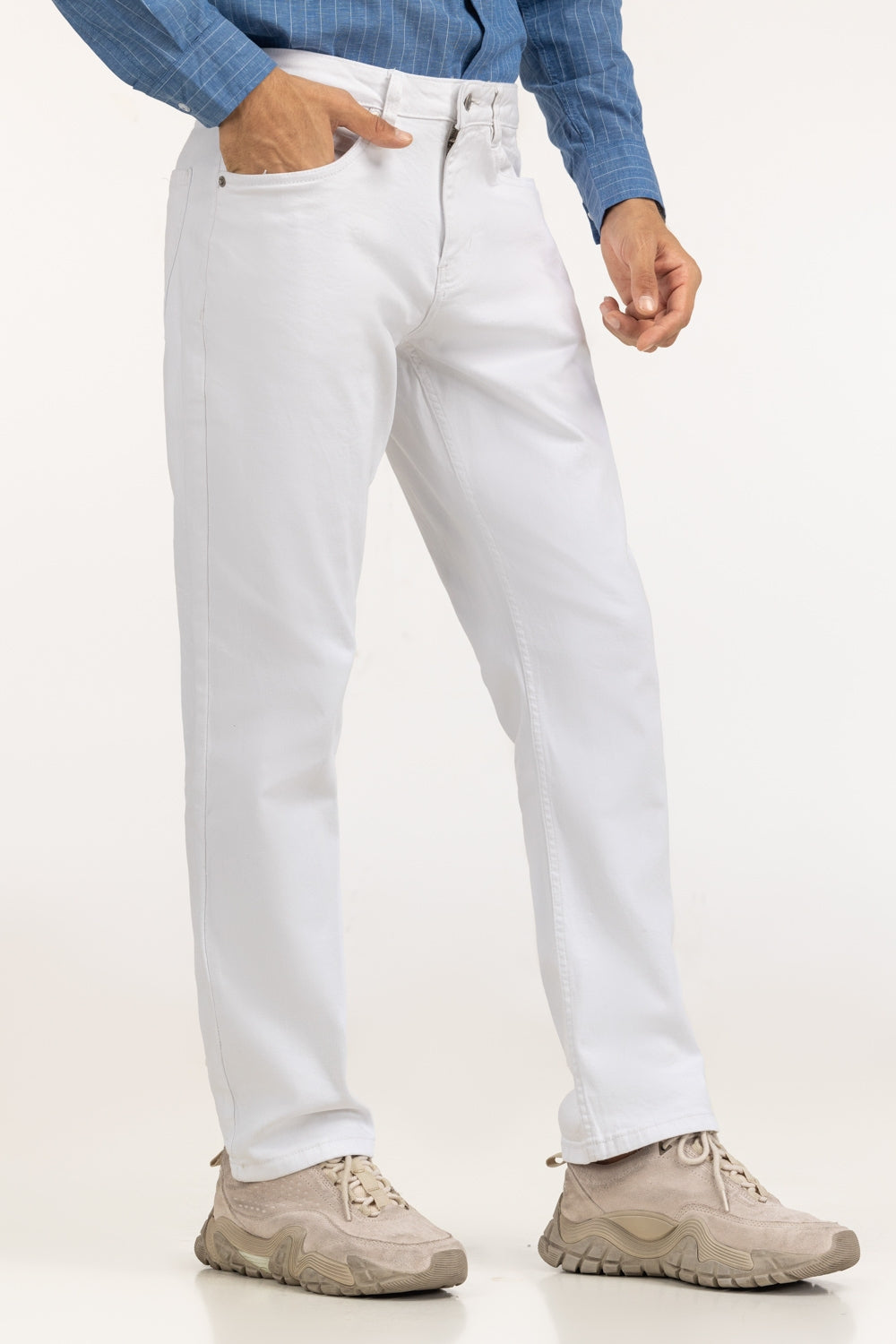 These straight-fit jeans in a soft off white color, deliver a fresh update to your everyday summer wardrobe. The light shade is perfect for warmer temperatures, ensuring you stay comfortable during long hours out