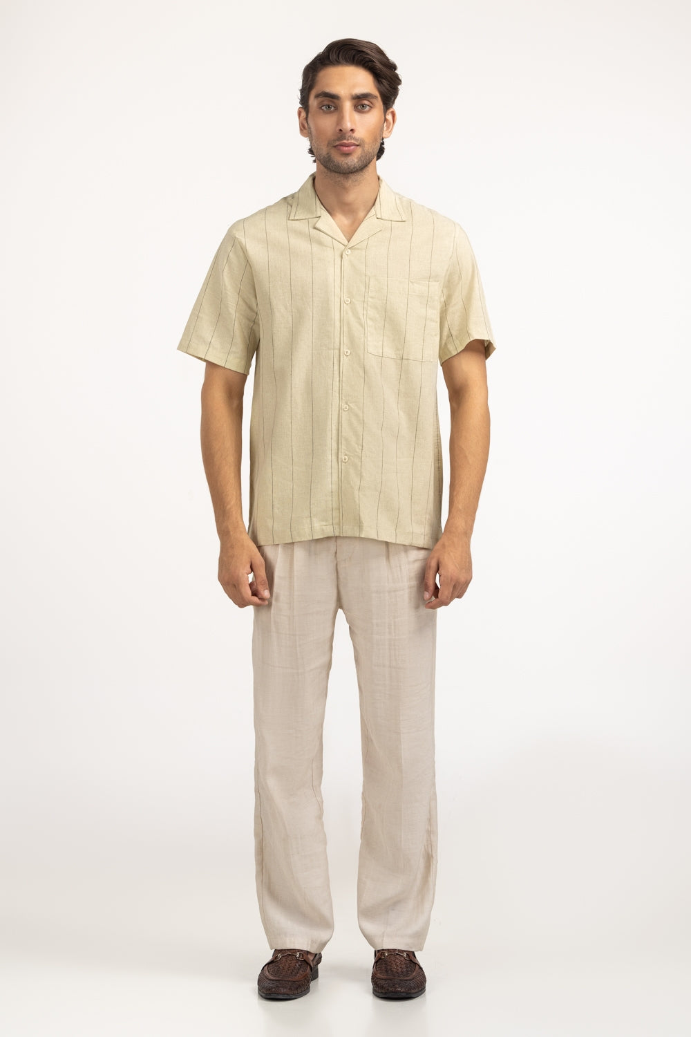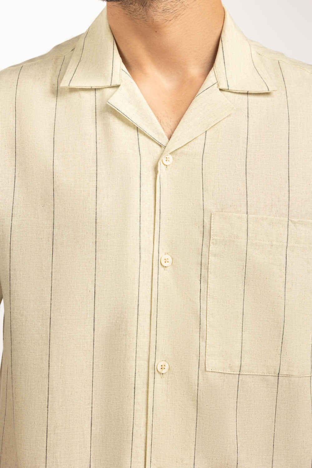 Channel a fresh vibe this summer with this regular fit shirt. Crafted from a breathable cotton linen blend, it highlights a subtle textured weave and a contemporary notch collar. The eye-catching striped design ensures you stand out while staying cool and comfortable wherever you go