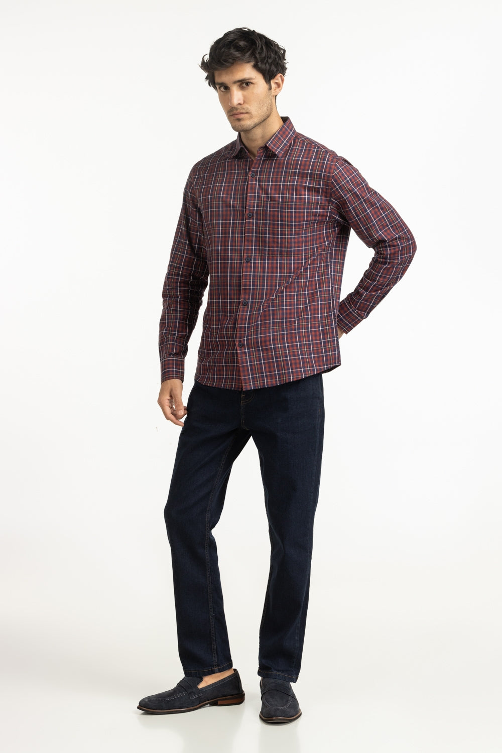 Featuring the timeless checks, this shirt in a regular fit is crafted from 100% cotton fabric. The breathable weave and structured tailoring keep it lightweight and comfortable, perfect for harsh summer days.