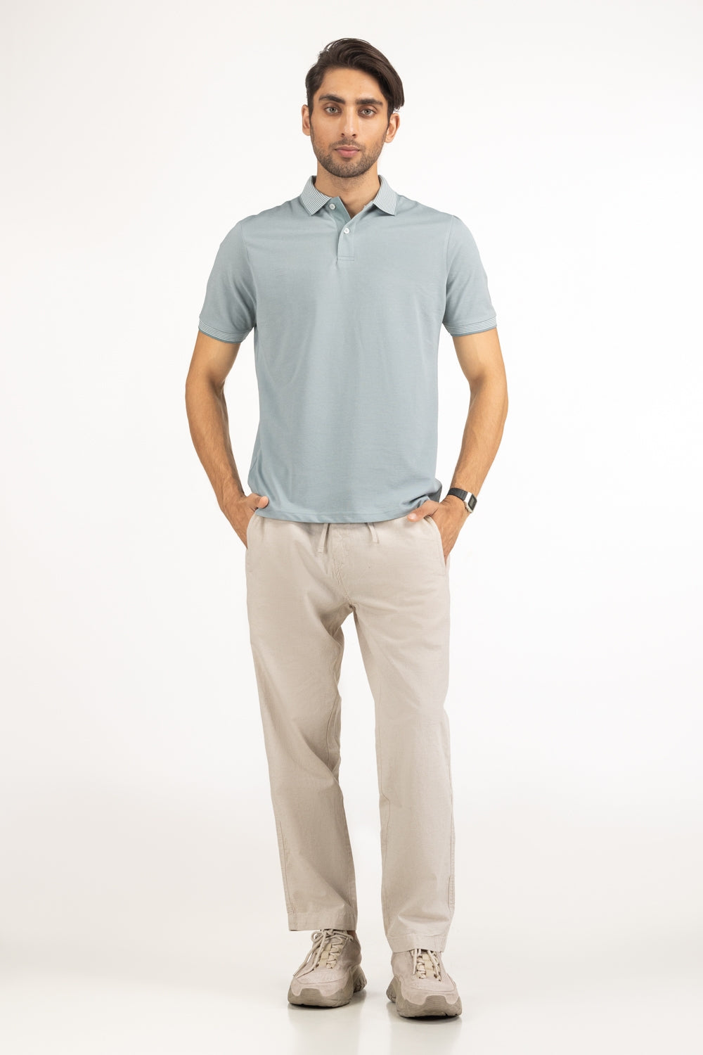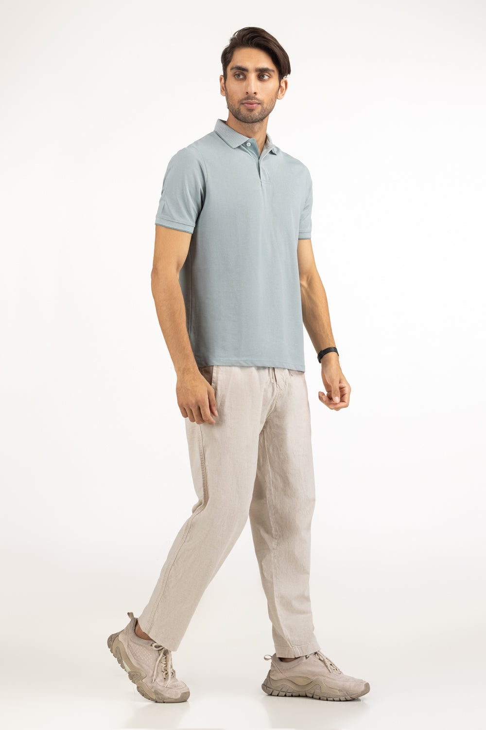 Built for summer ease, this polo features a striped collar that stands out against its smooth base. The regular fit provides structure while staying soft against the skin