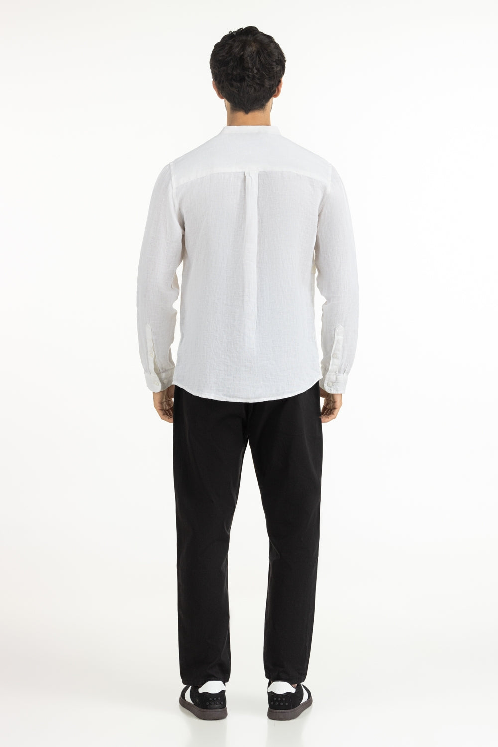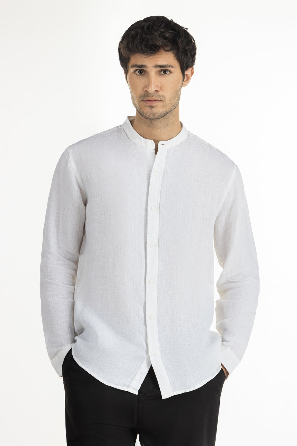 Crisp, clean, and breathable. This shirt combines the best of comfort and style. The ben collar offers a contemporary detail, while the regular fit ensures a flattering yet laid-back shape. 100% cotton makes it light enough for the hottest afternoons. A timeless pick for you summer wardrobe.
