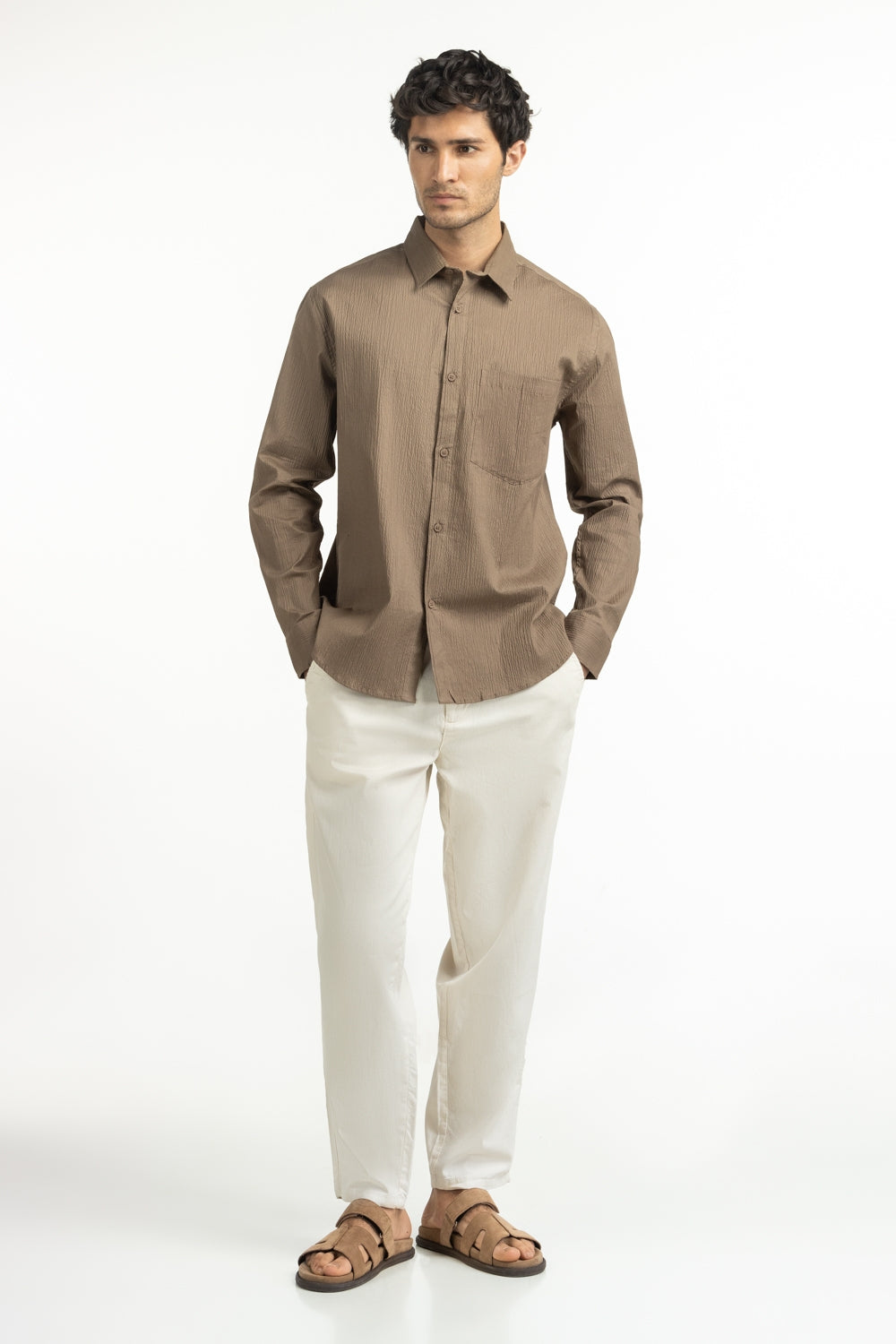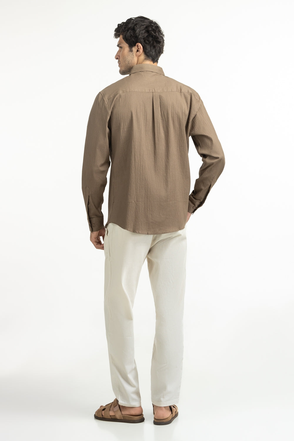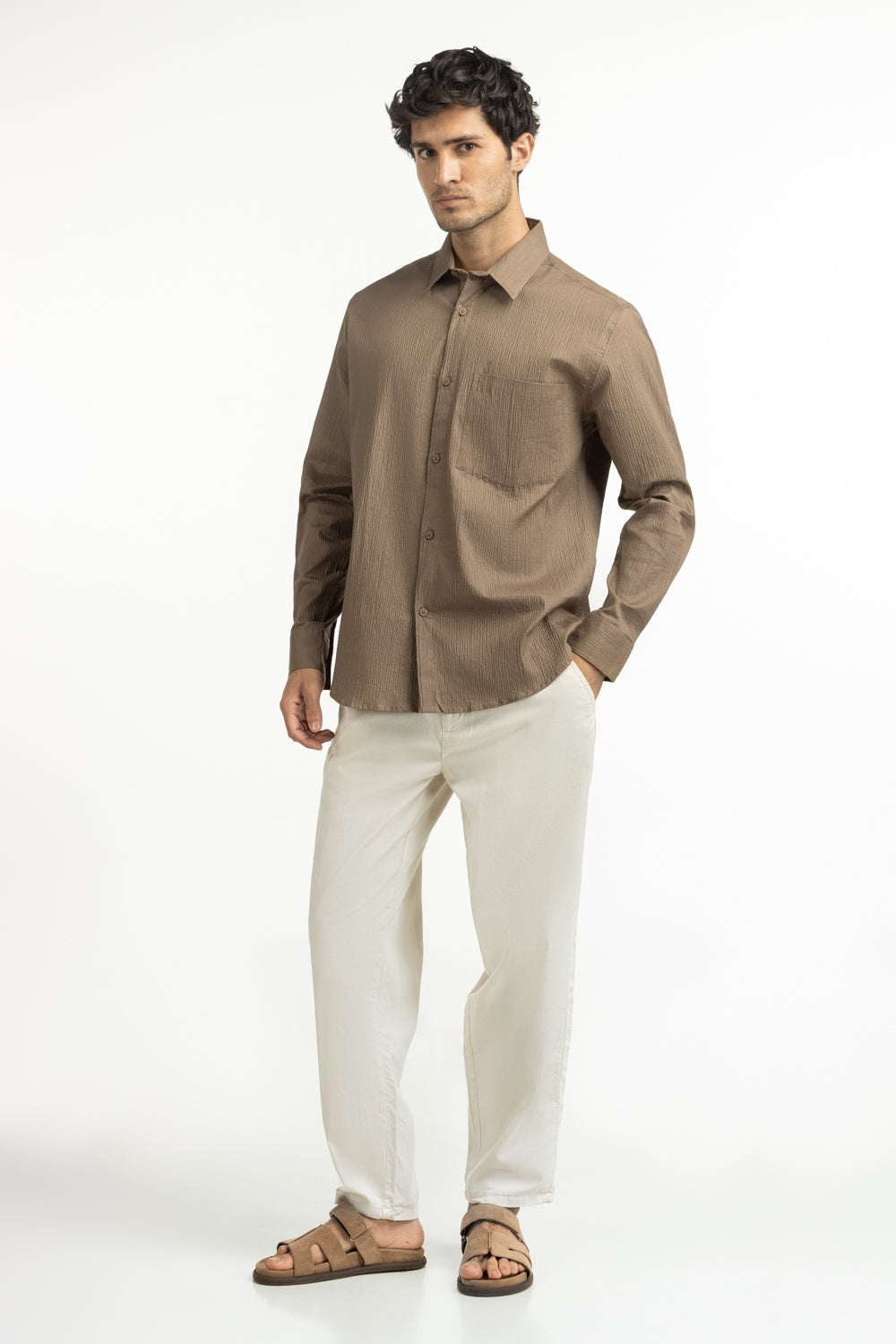 Lightweight and textured, this breathable button-down shirt is cut in a regular fit that’s both flattering and functional. Its fabric allows breathability, perfect for warm days that demand comfort without compromise.