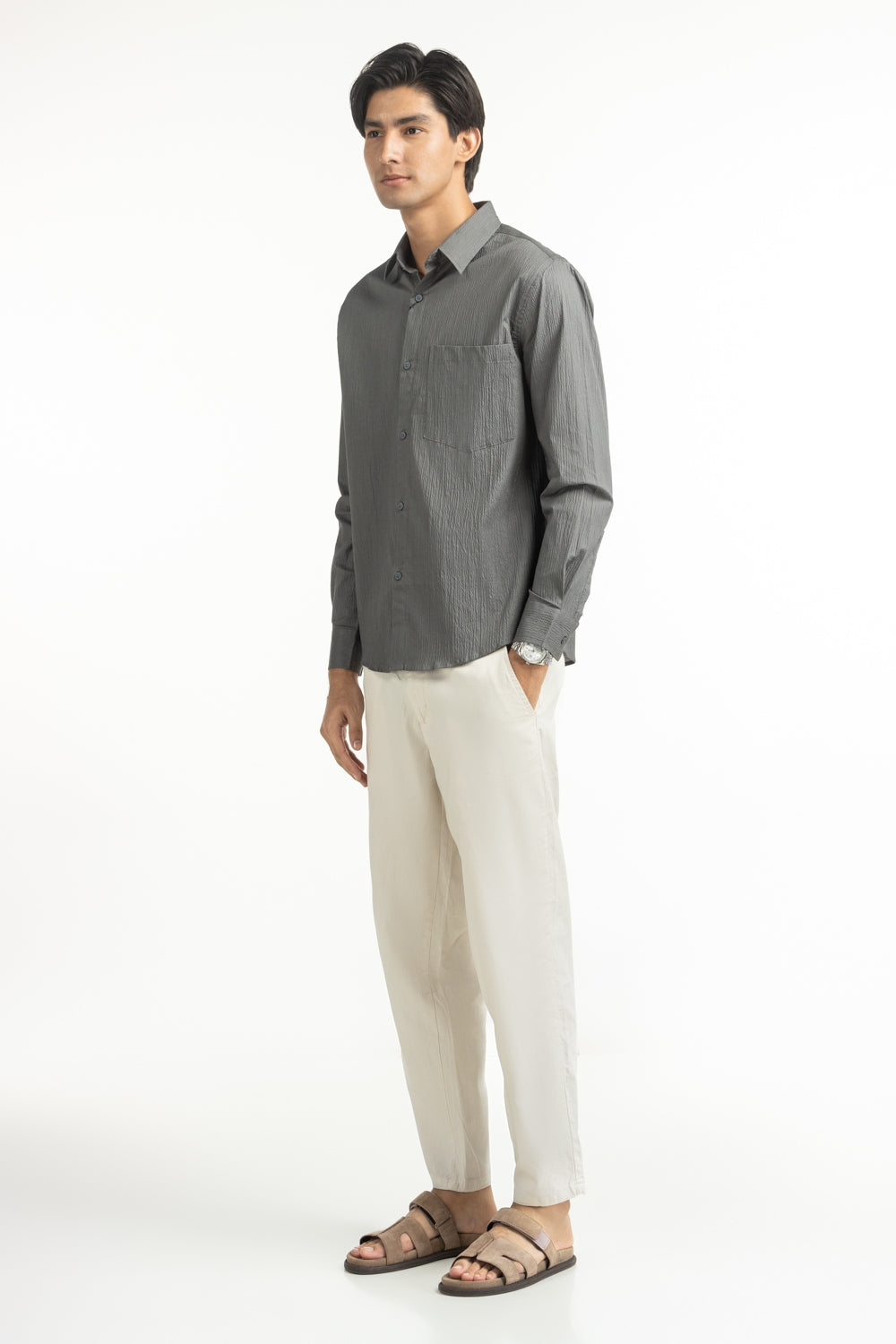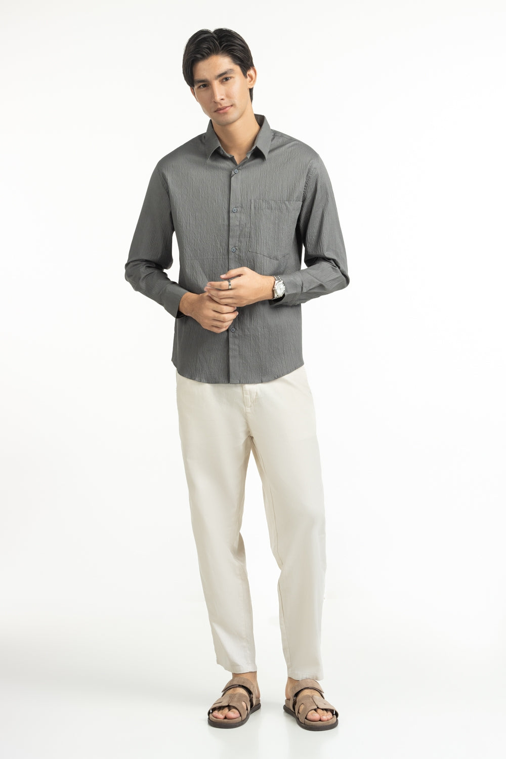Crafted with textured breathable fabric, this button-down shirt in regular fit ensures you stay cool while maintaining a polished profile all day long.