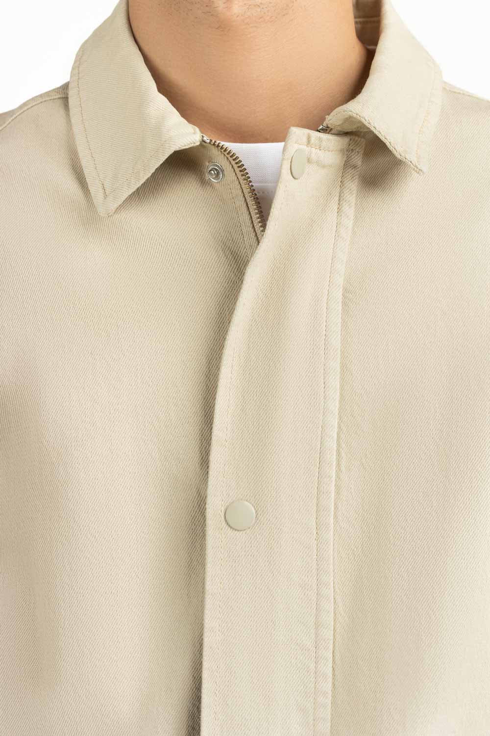 A contemporary classic in beige, this jacket balances structure and ease with a regular fit. The zipper front and button placket create a layered design detail. While the pockets at the front add everyday functionality with a premium finish.