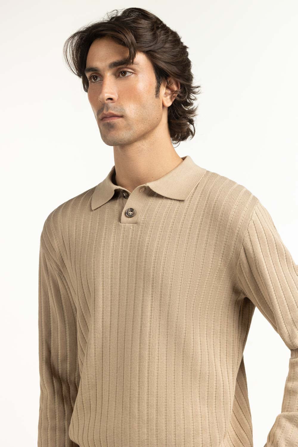 A contemporary twist in the classic polo, this piece comes in a neutral beige tone with a textured surface that adds depth to its clean lines. Its regular fit makes it easy to wear solo or layered. Crafted with care, it offers warmth with modern refinement.