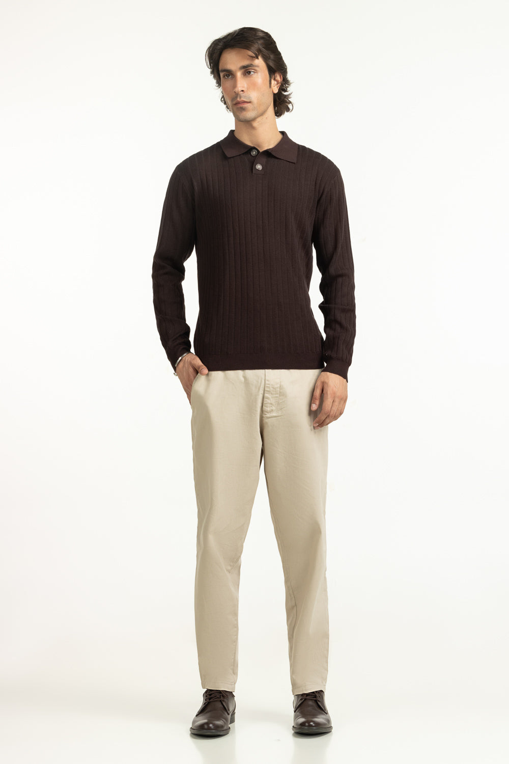 With its textured surface and a dark brown color, this polo brings subtle dimension to a classic style. The regular fit creates a balanced look, while the knitted texture delivers softness and warmth.