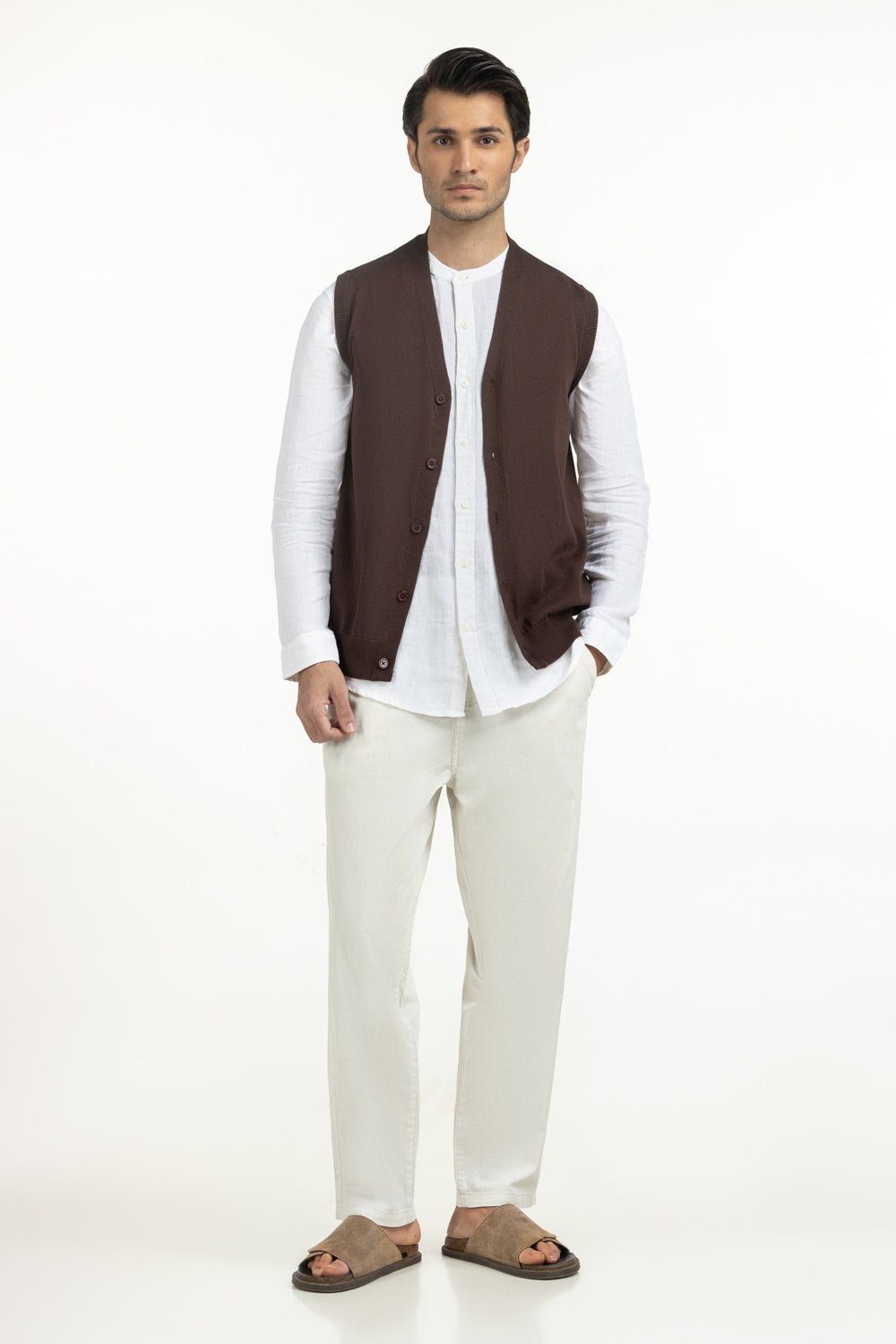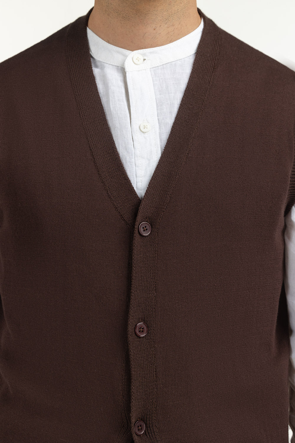 The dark brown sweater is crafted from 100% cotton, bringing breathable comfort into winter layers. The button-down front allows versatile styling, while the V-neckline adds a touch of refined sharpness. Designed in a regular fit, it moves with ease through the day.