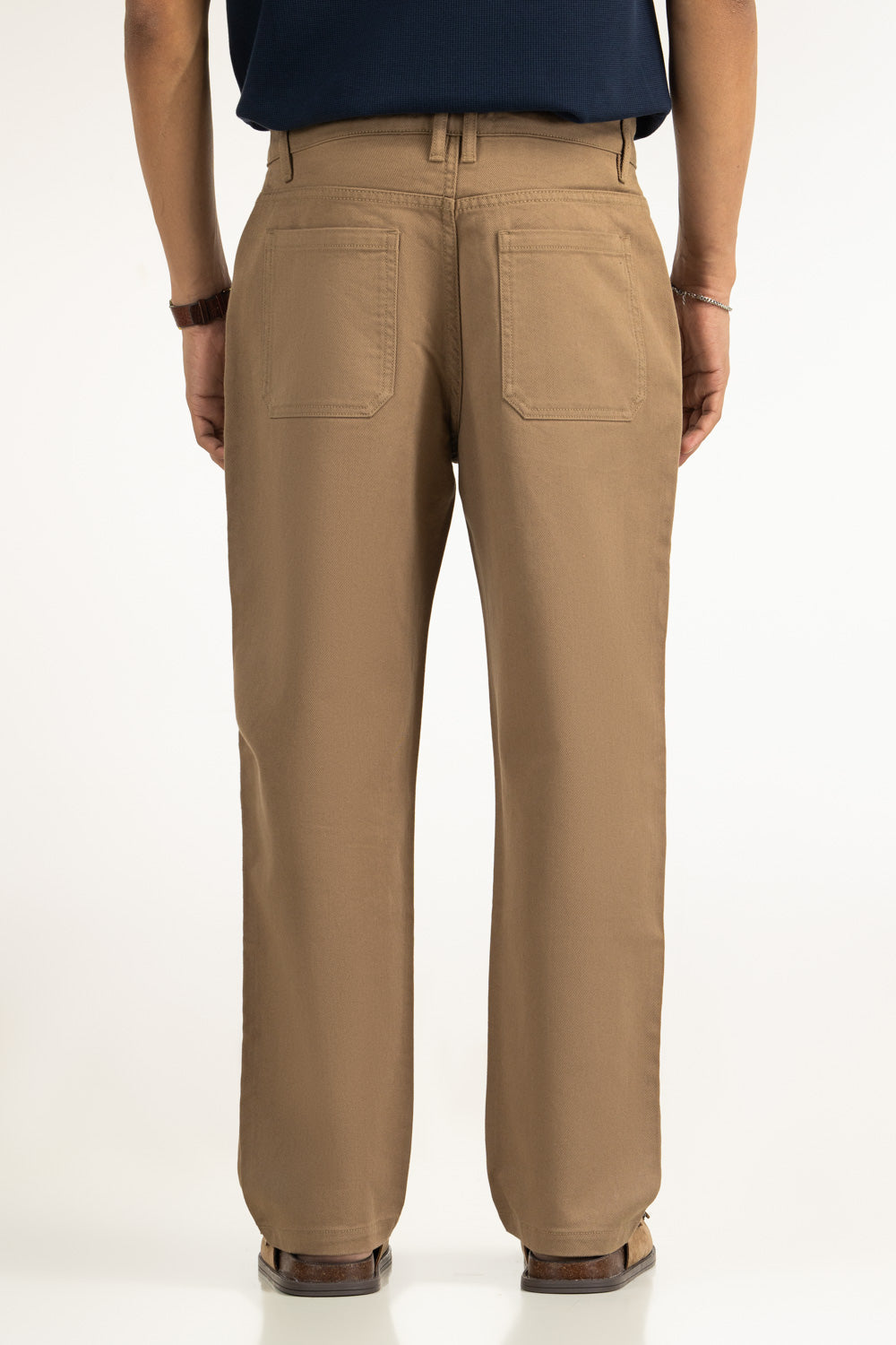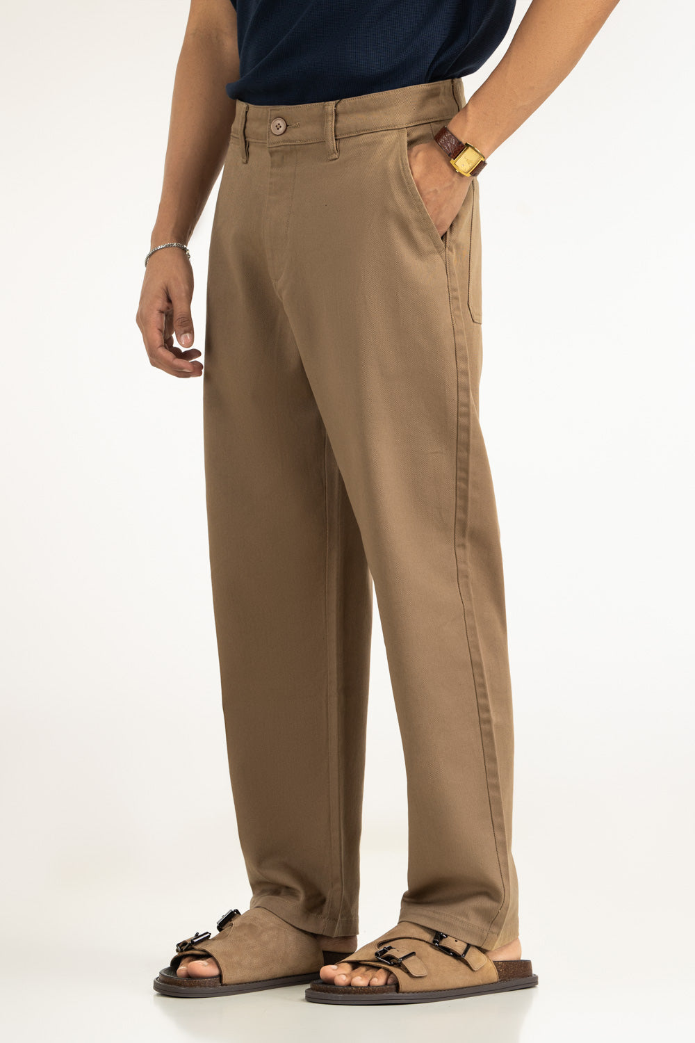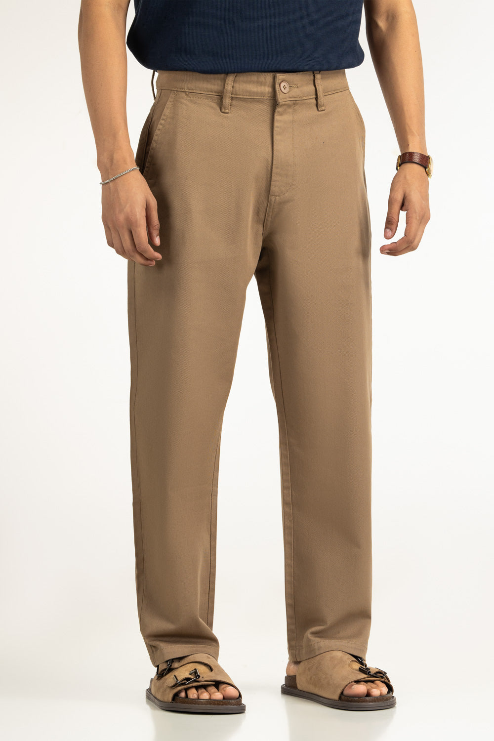 Crafted from breathable 100% cotton fabric, these regular fit trousers provide a clean structured silhouette with soft comfort. The timeless khaki color placed in the central design enhances its versatile casual appeal.