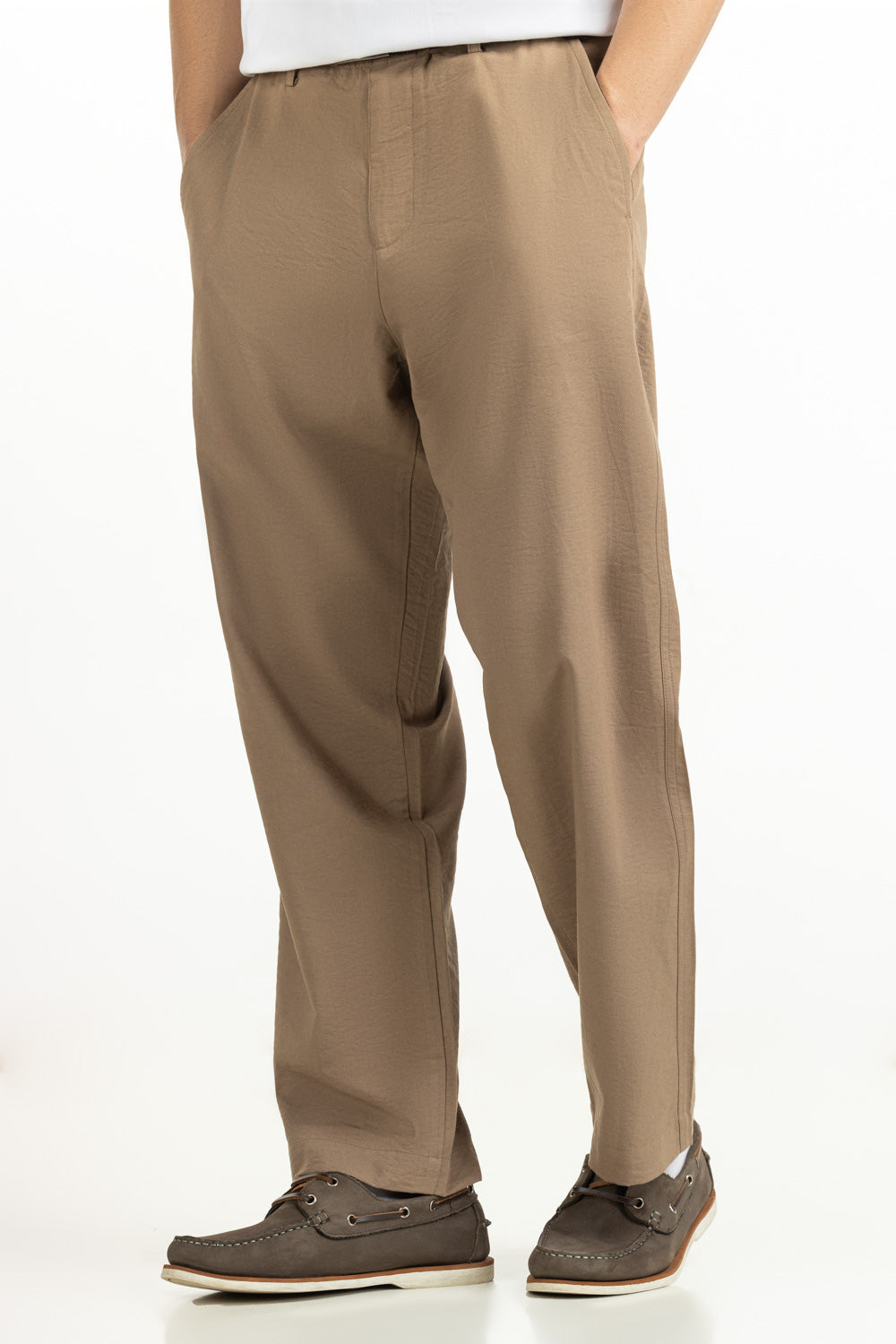 In light beige, these trousers redefine winter minimalism with a contemporary edge. The straight fit carves a sharp profile, offering comfort and structure in one. Breezy in fabric yet refined in texture and appeal.