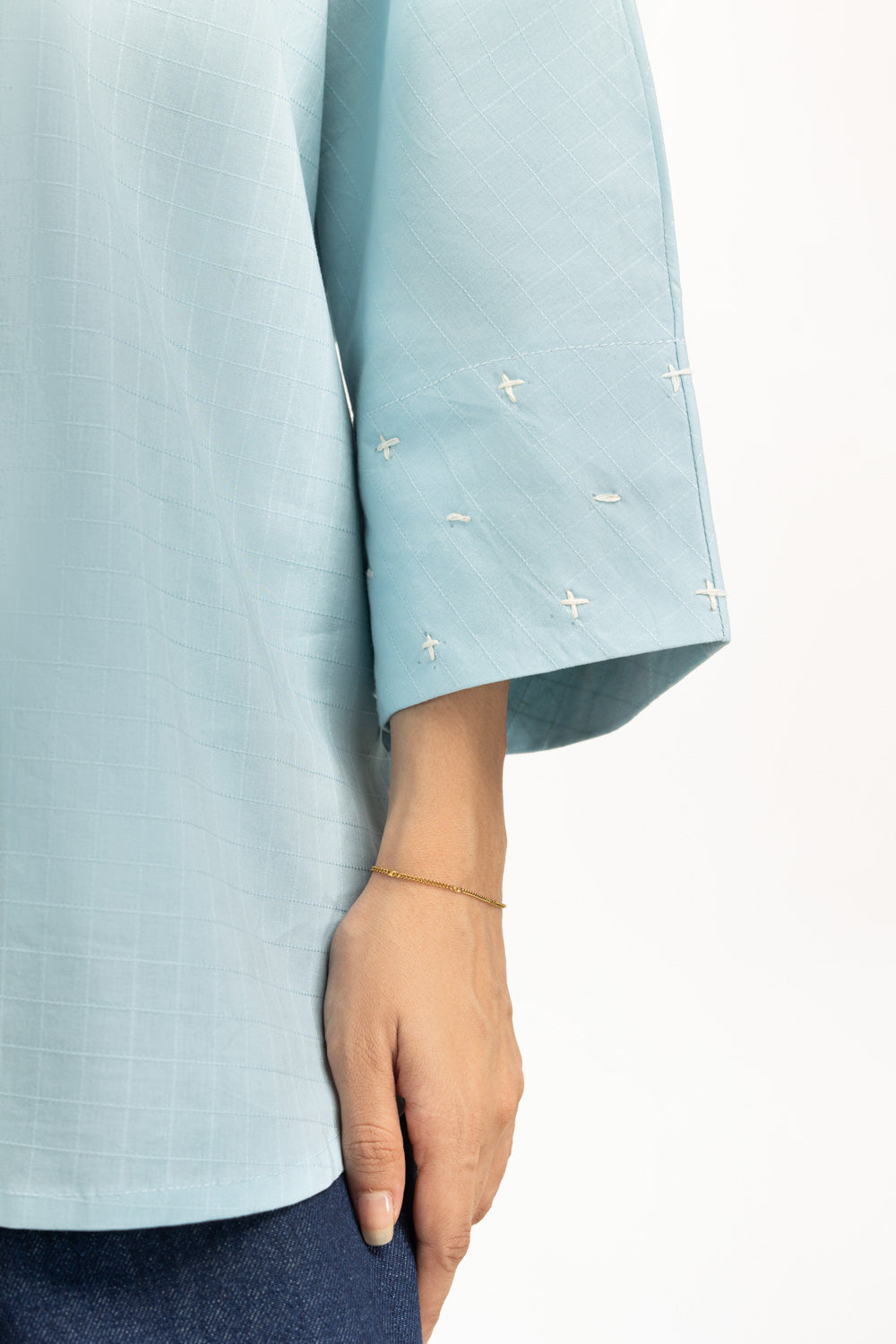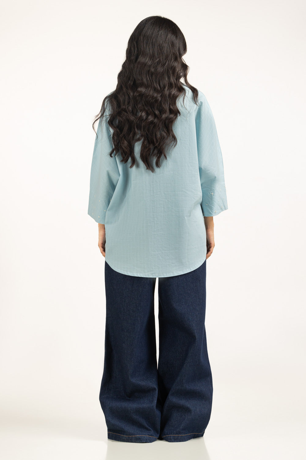 The textured shirt designed in a regular fit with a neat band collar for understated sophistication. Its lightweight weave ensures summer ease, keeping you cool without compromising style.
