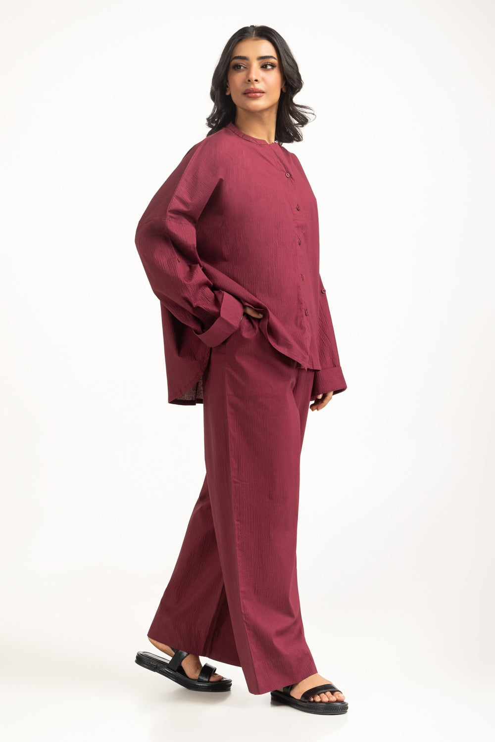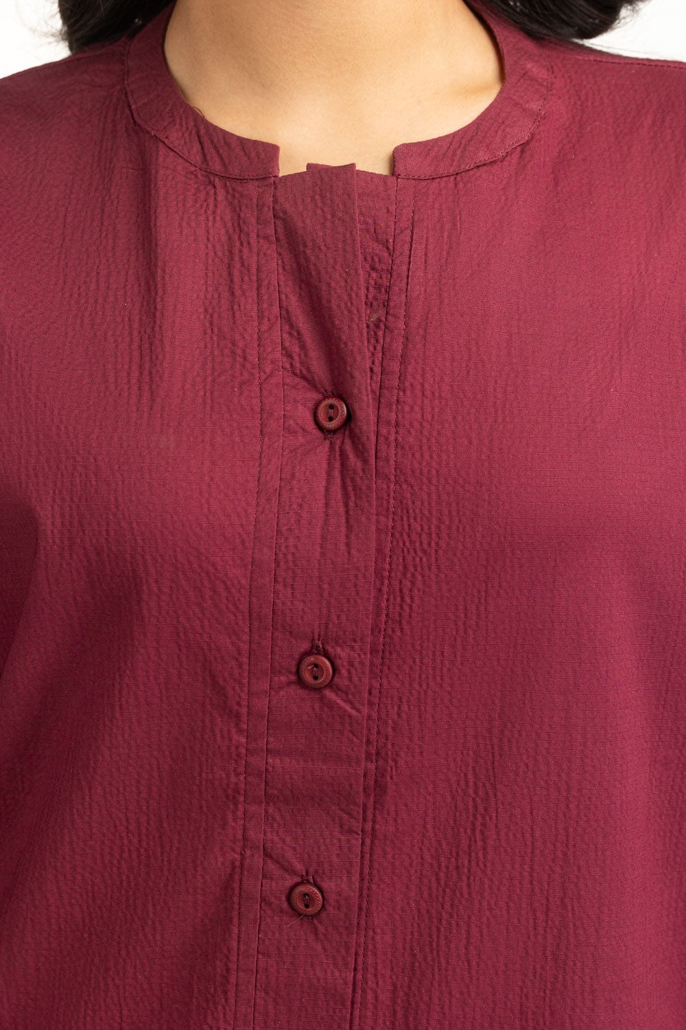 Chic yet understated, this regular fit shirt in a wine red tone, redefines casual wear with its seersucker texture. The ben collar frames the neckline with elegance, while the button-down detailing adds everyday ease throughout summer.