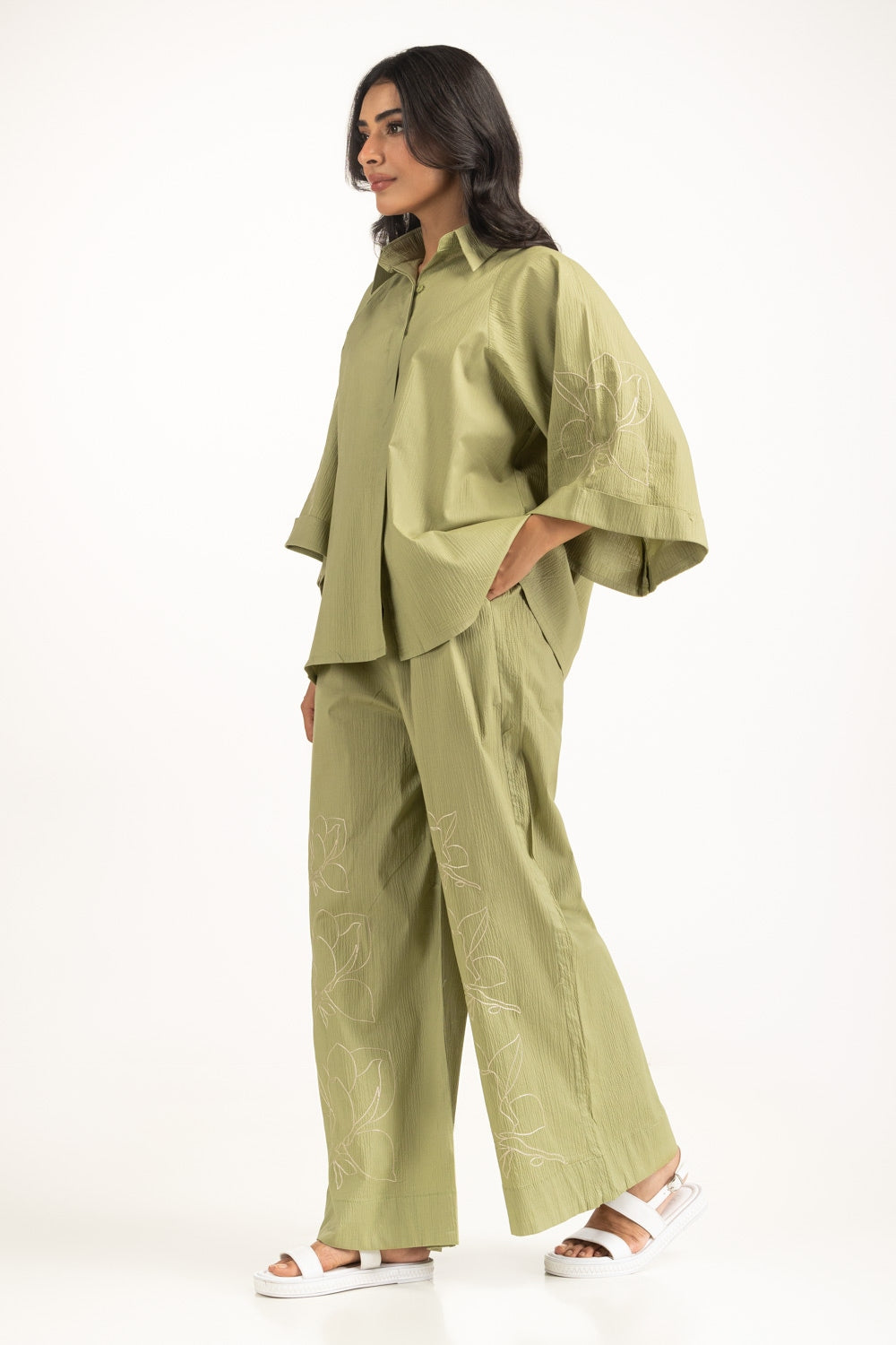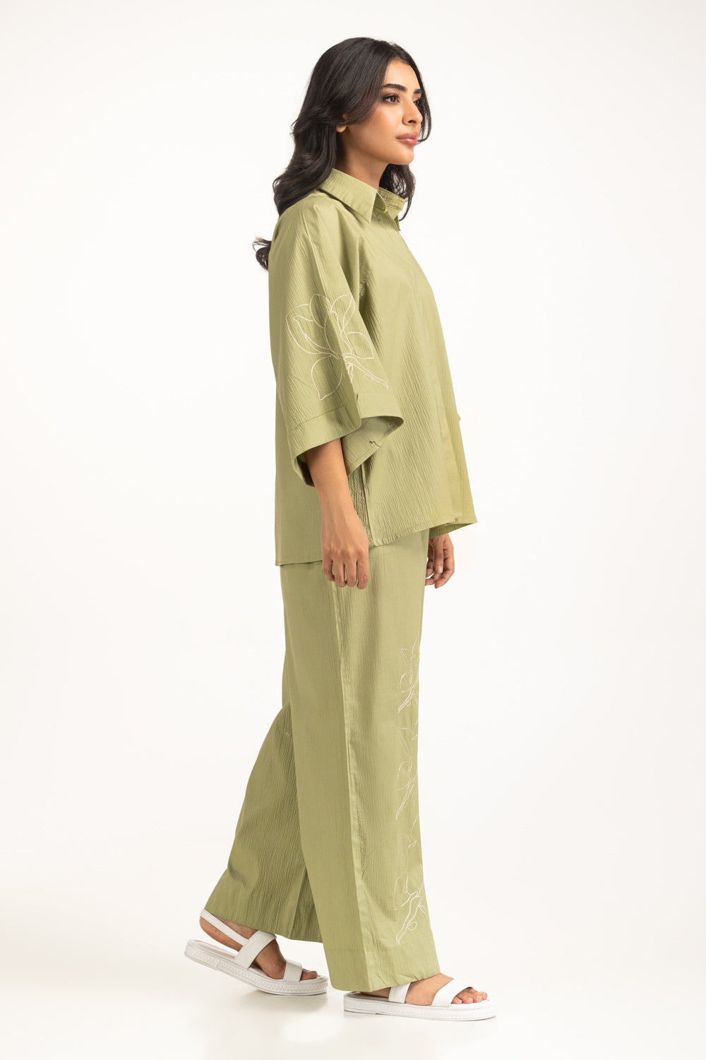 This shirt strikes the perfect chord between texture and charm. The shirt collar adds a timeless touch, while the delicate floral detailing on the sleeves softens the look. Designed in a regular fit for all-day comfort, it feels breezy and light.