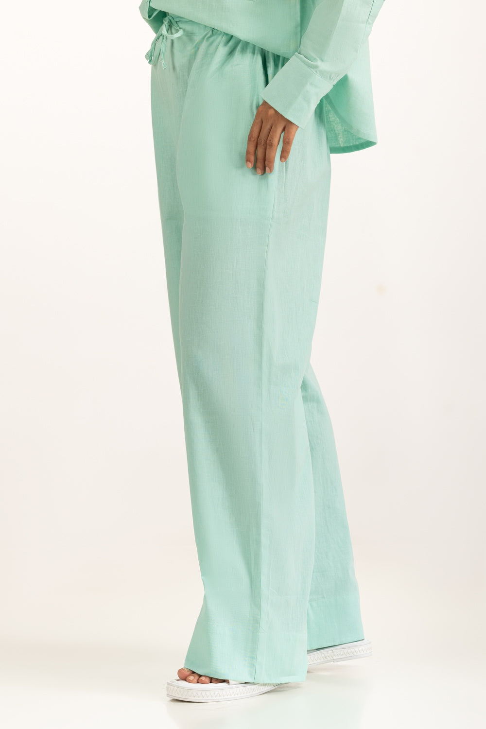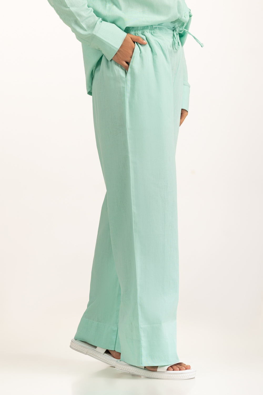 Light as air, these trousers redefine casual elegance in a refreshing tone. The tying string adds functionality, giving flexibility in fit. While its regular fit silhouette, makes it move easily through the day.