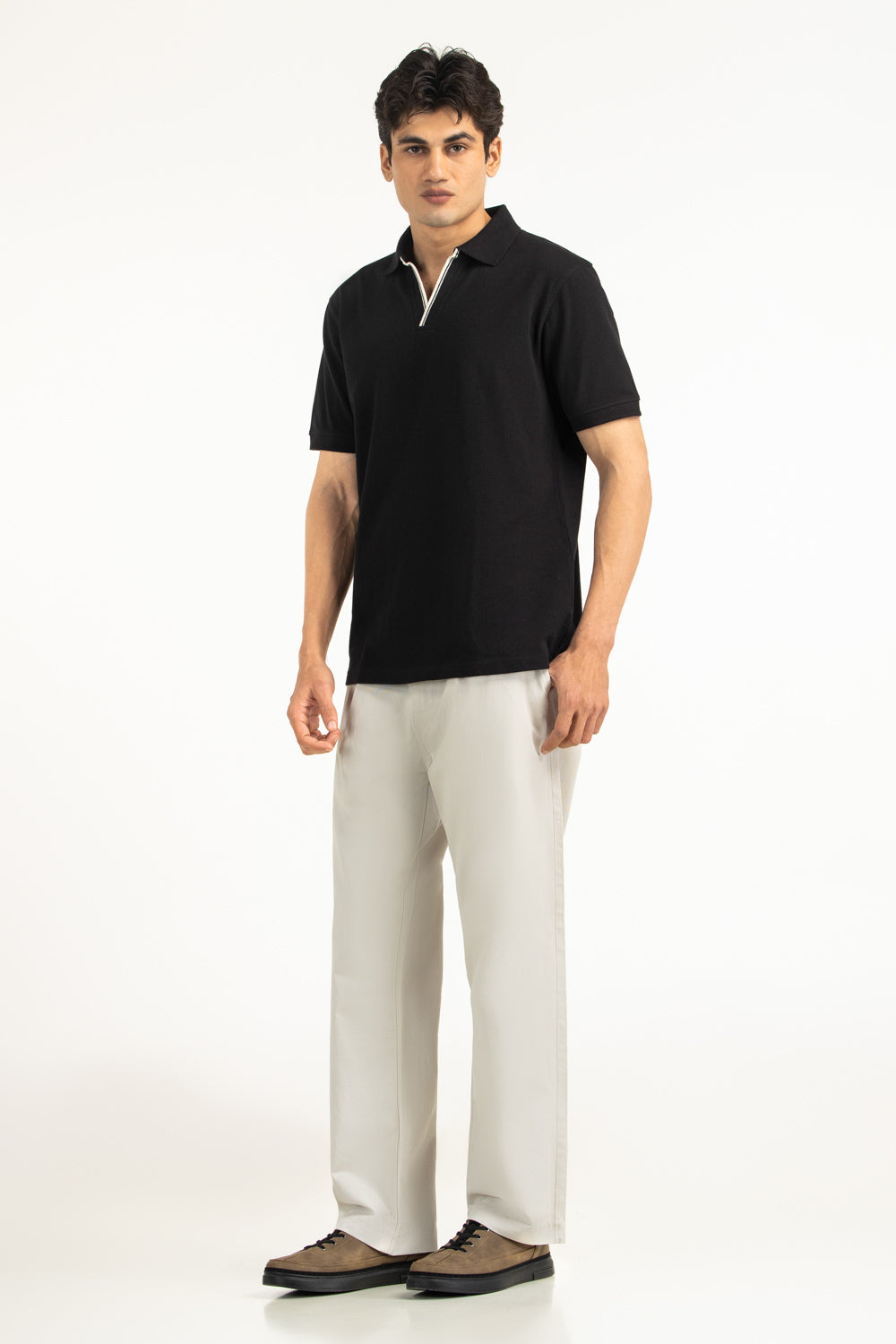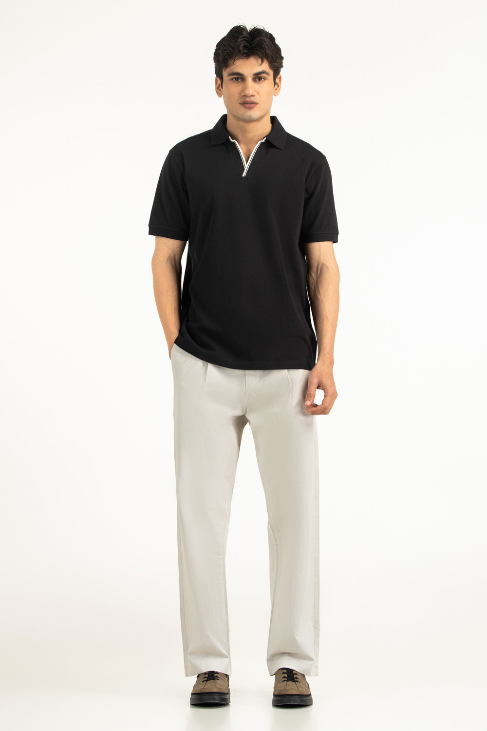 Crafted using breathable 100% cotton fabric, this regular fit polo shirt offers structured comfort with refined finishing. The classic black color positioned within the styling tone enhances its timeless versatility.