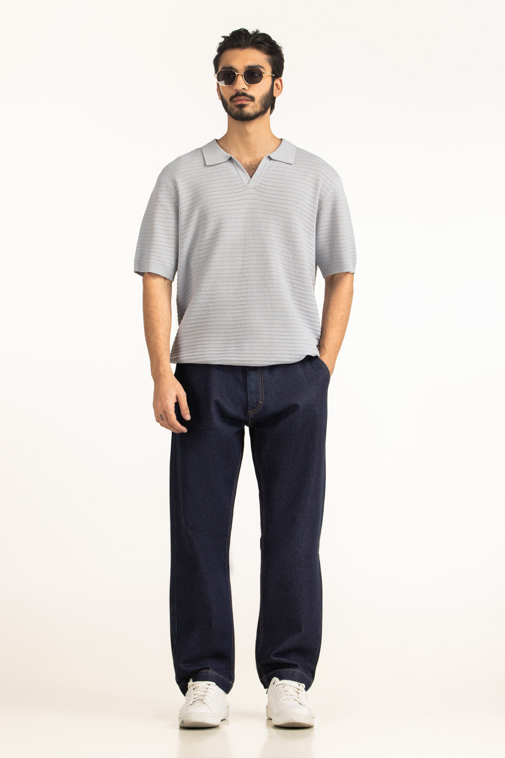 Comfortable grey polo made from 100% viscose. The grey regular fit design ensures a breathable and versatile option for everyday casual styling.