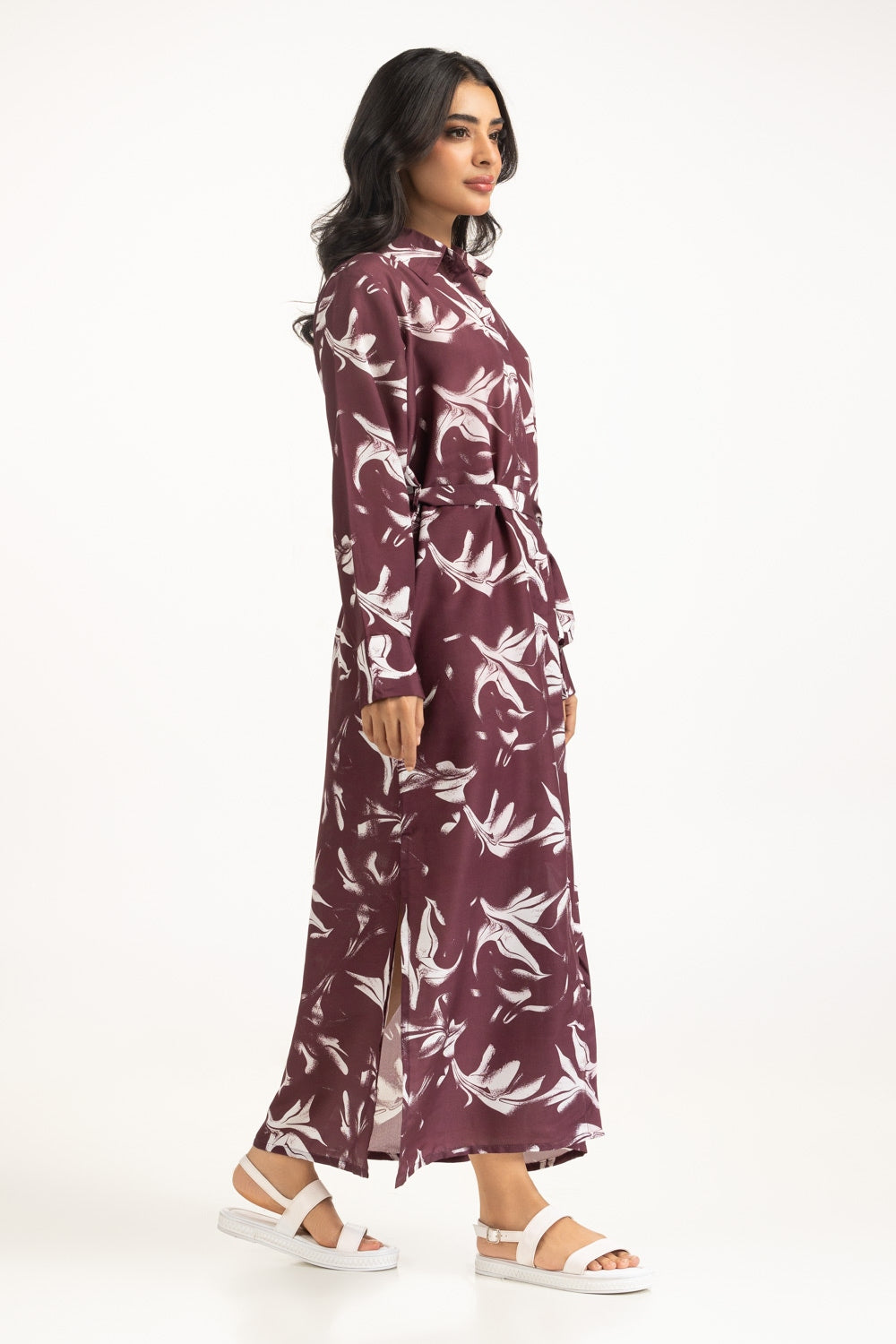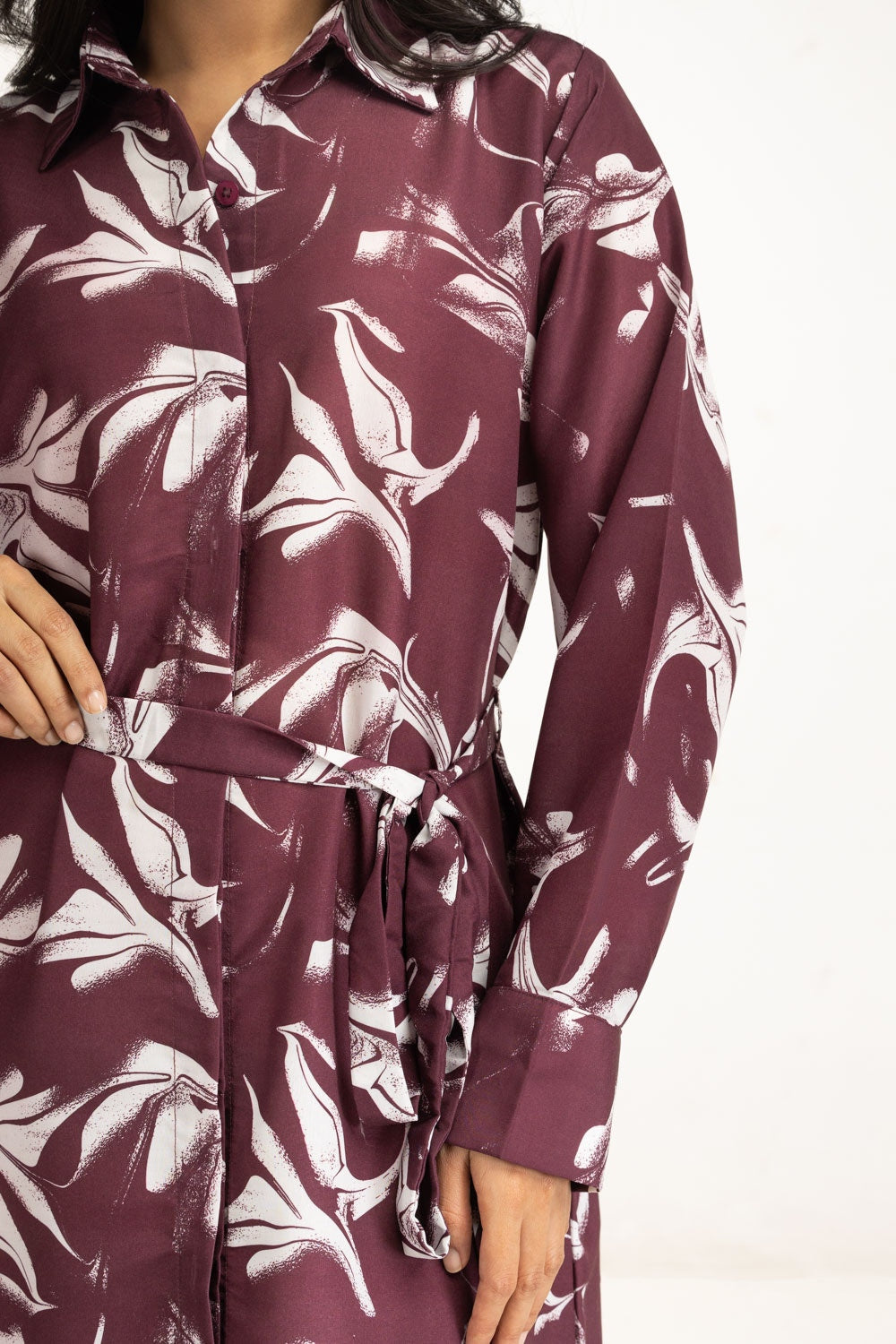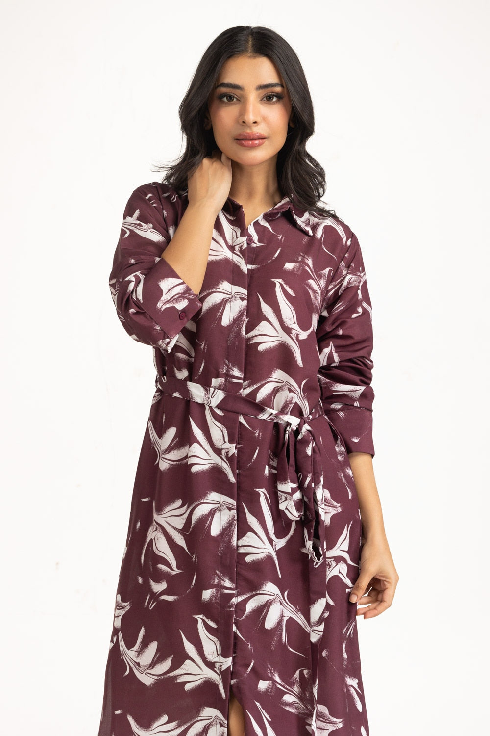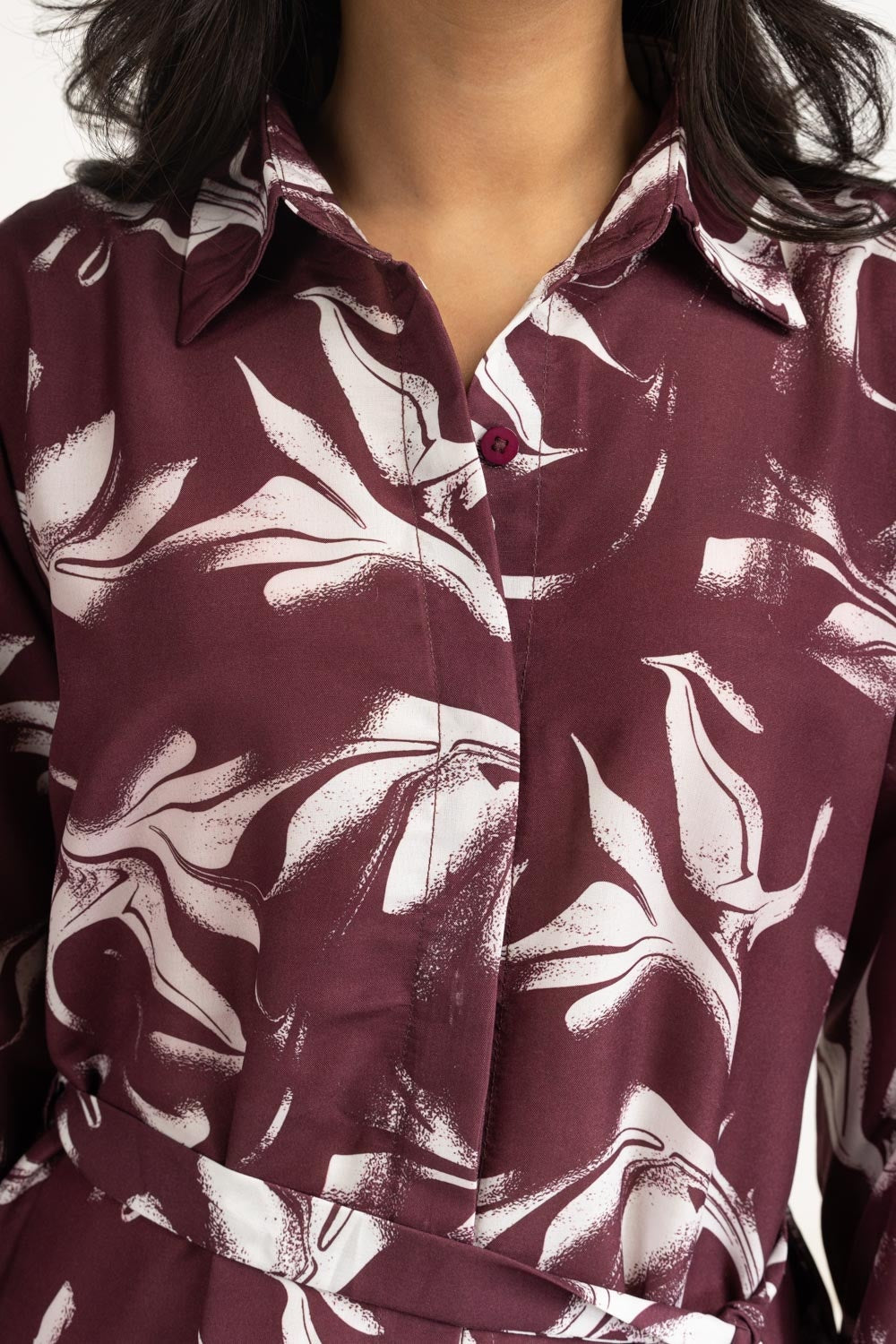 This dress blends structured design with relaxed ease, featuring a front-open silhouette, in a deep maroon hue. The adjustable strap adds versatility, while its breezy construction keeps you cool and chic all summer long.
