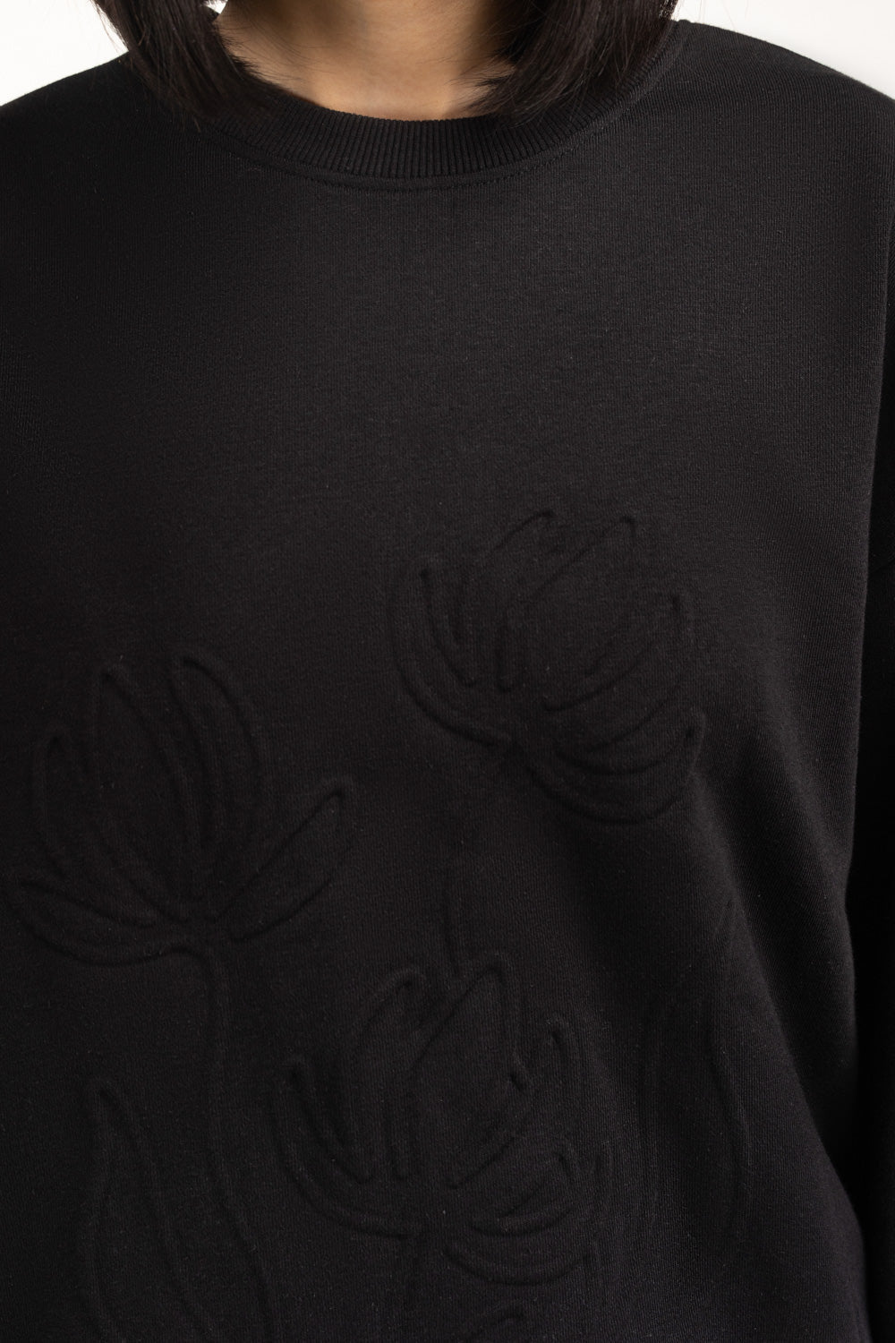 Smooth knit and a bold black tone make this sweatshirt a reliable winter basic. The blended construction...