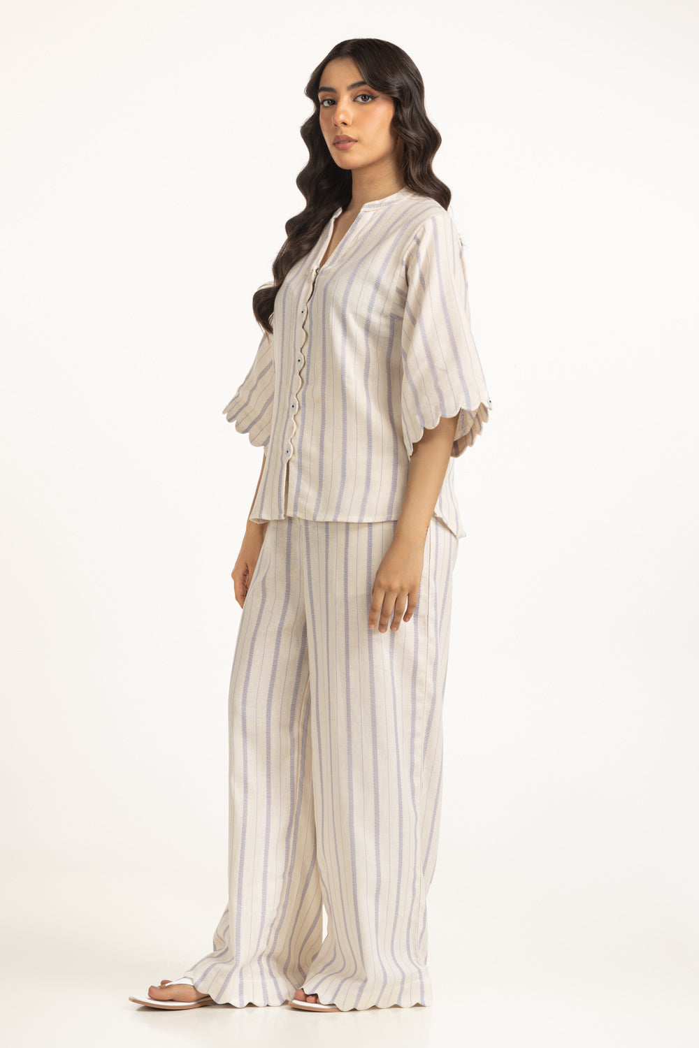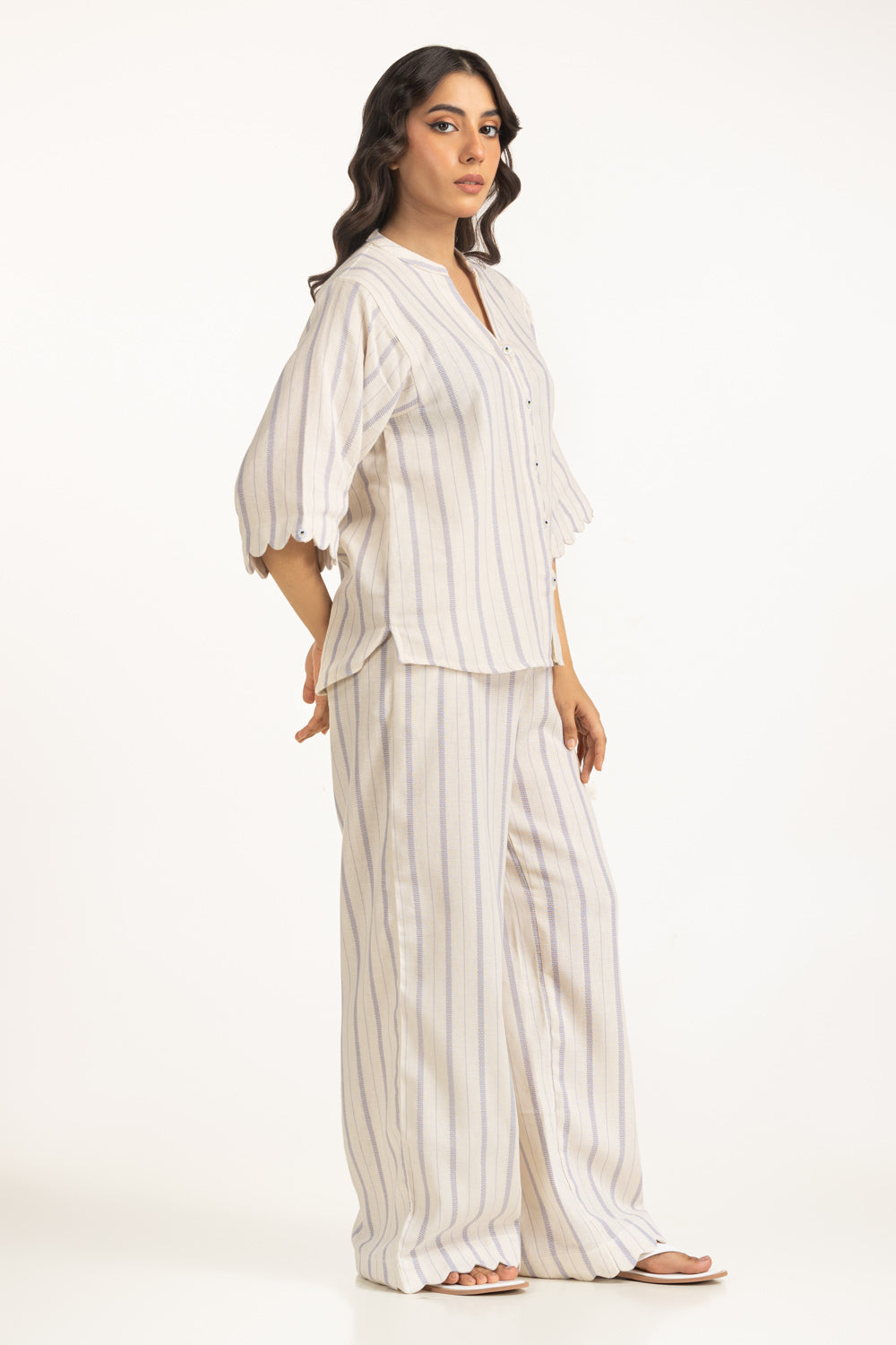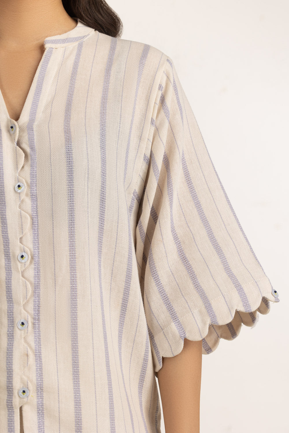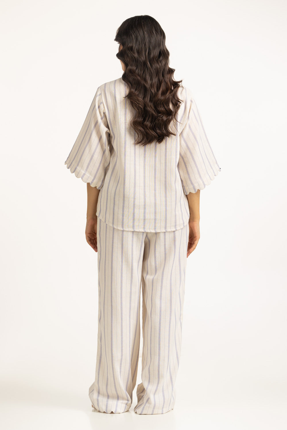 Made in pure cotton fabric with refreshing lilac stripes, this button-down top capture the essence of laid-back elegance. Its structured yet breathable silhouette keeps you poised through long summer hours. Pair with the coordinated bottoms for a sleek, effortless look.