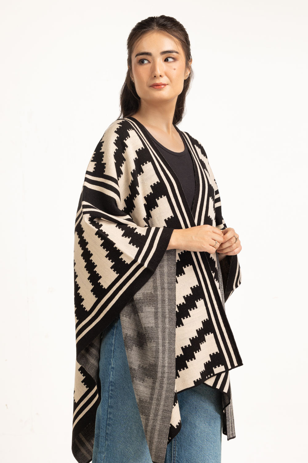 Draped in muted winter tones, this cape shawl brings a refined edge to cold-weather styling. The regular fit offers an effortless fall, creating movement with every step. Crafted to keep you warm without weight, it layers seamlessly over both casual knits and tailored coats. A statement in minimal sophistication for the modern season.��������������