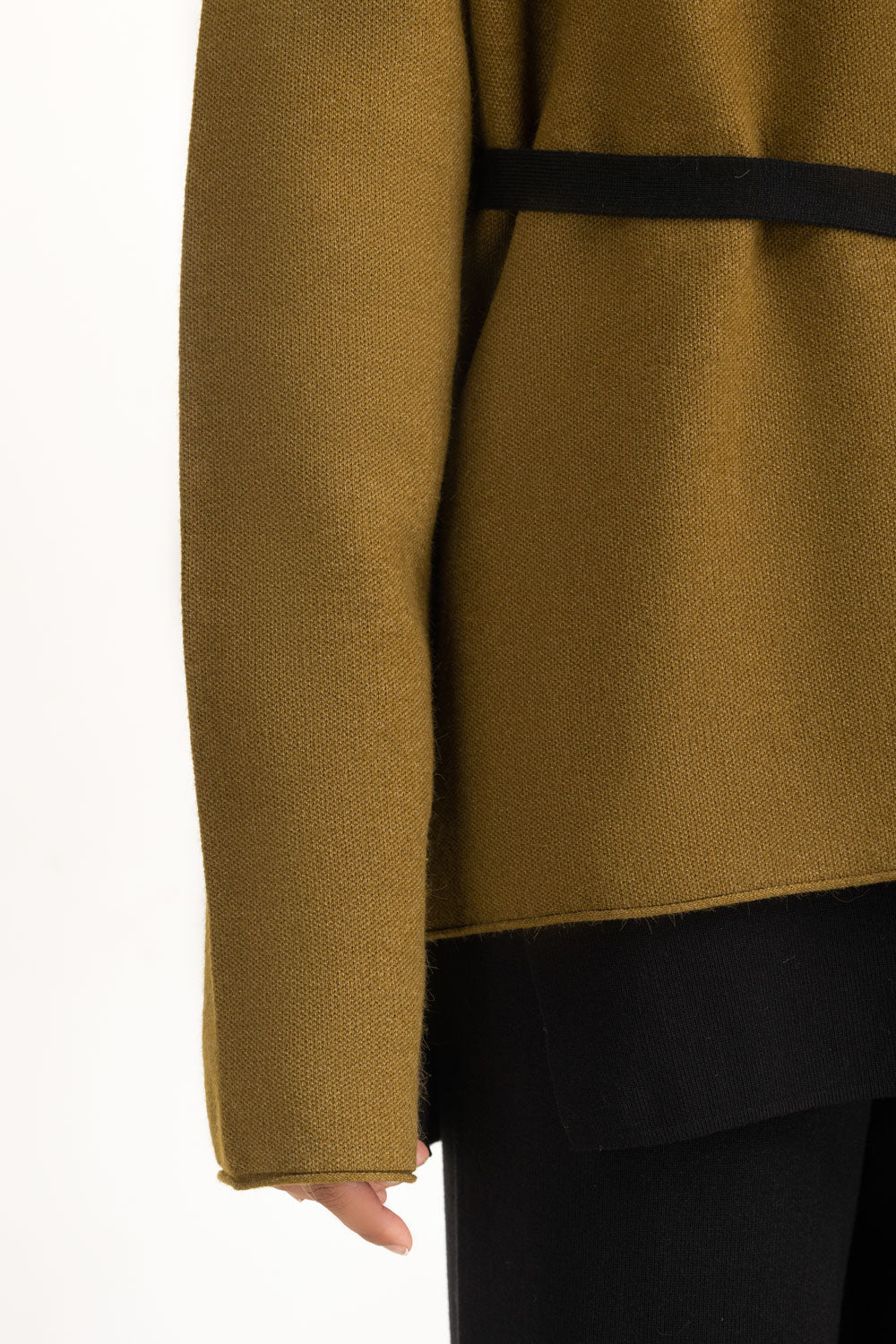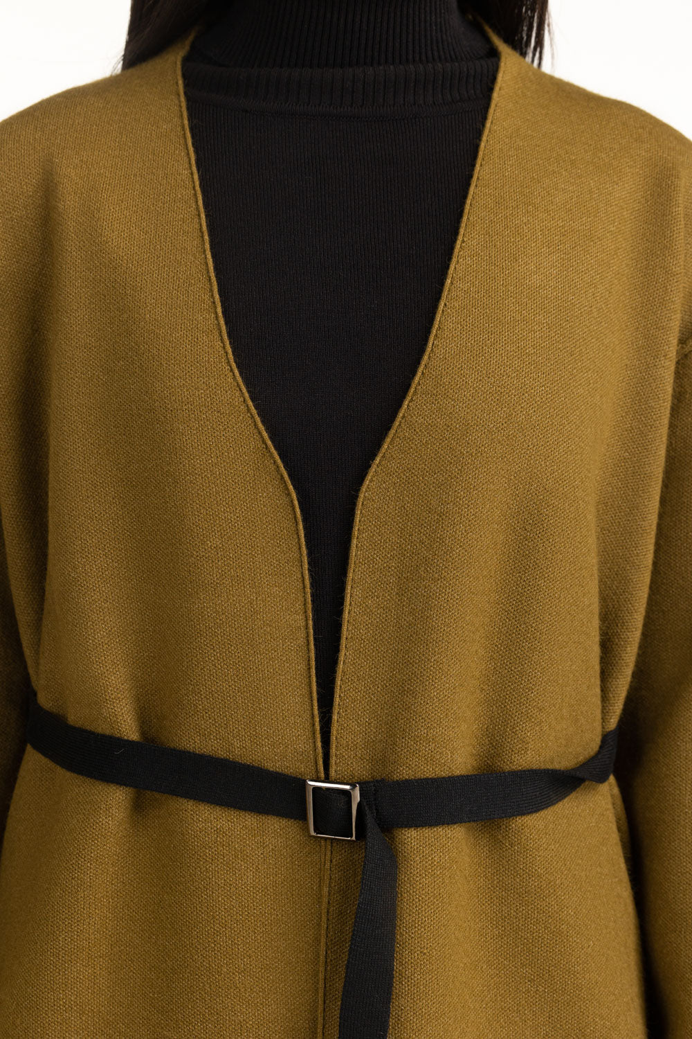 A rich olive cardigan designed in a regular fit with a sleek front-open cut for effortless layering. The soft black belt defines the waistline, offering comfort and structure. Crafted in a fine winter knit that feels warm yet breathable. A modern classic tailored for women who prefer understated sophistication.����������������������