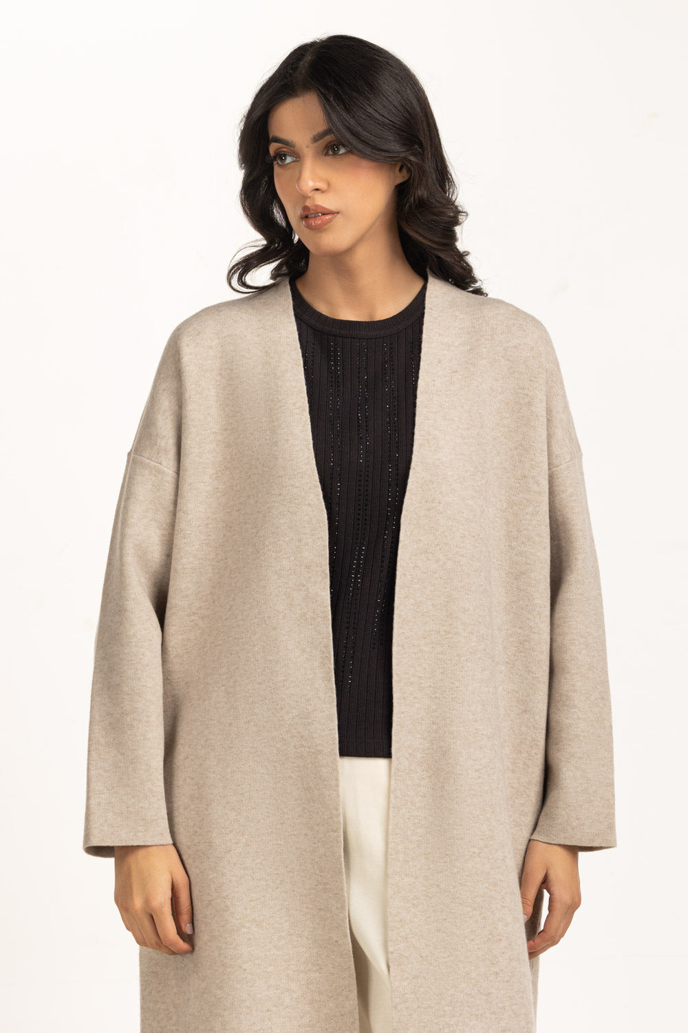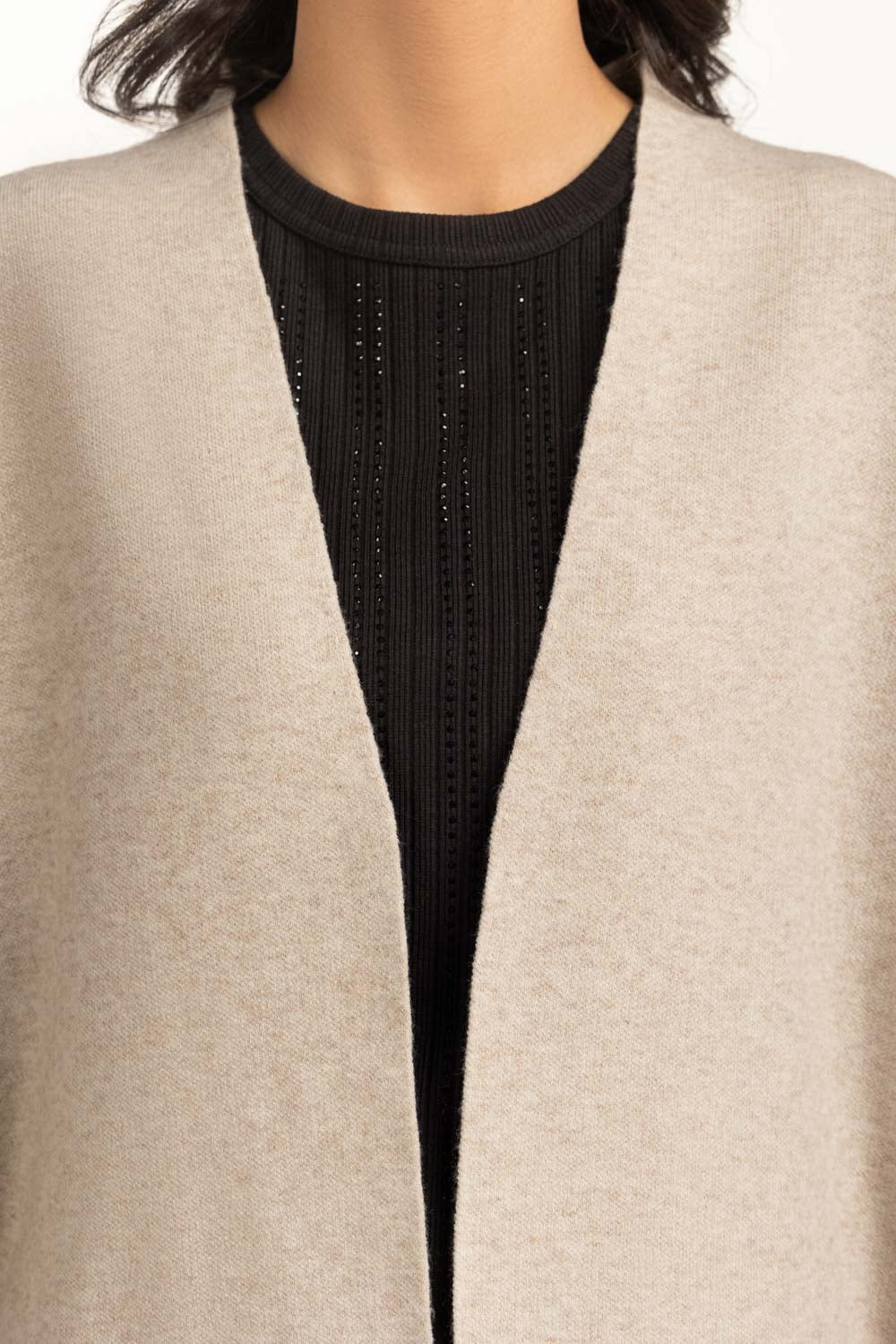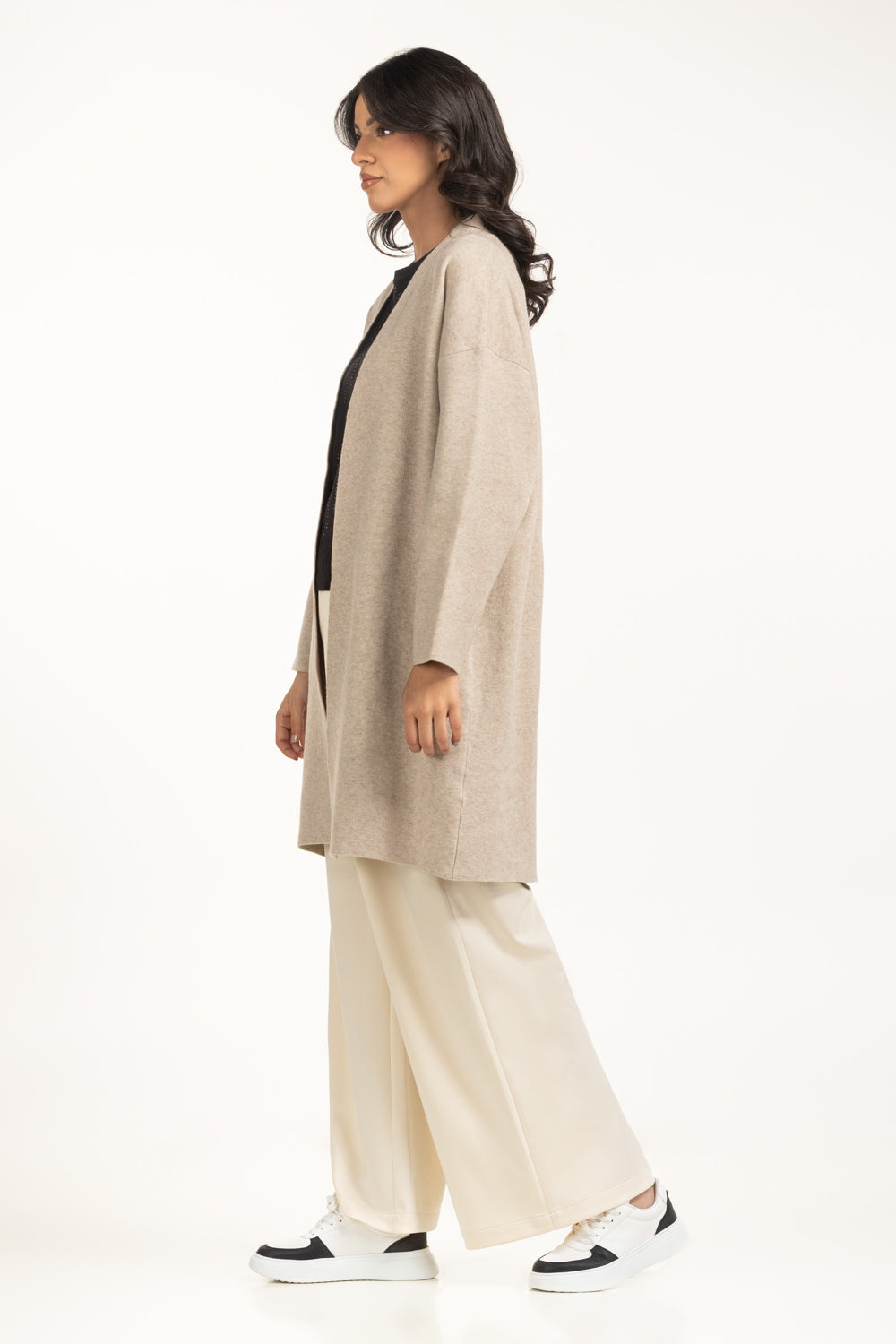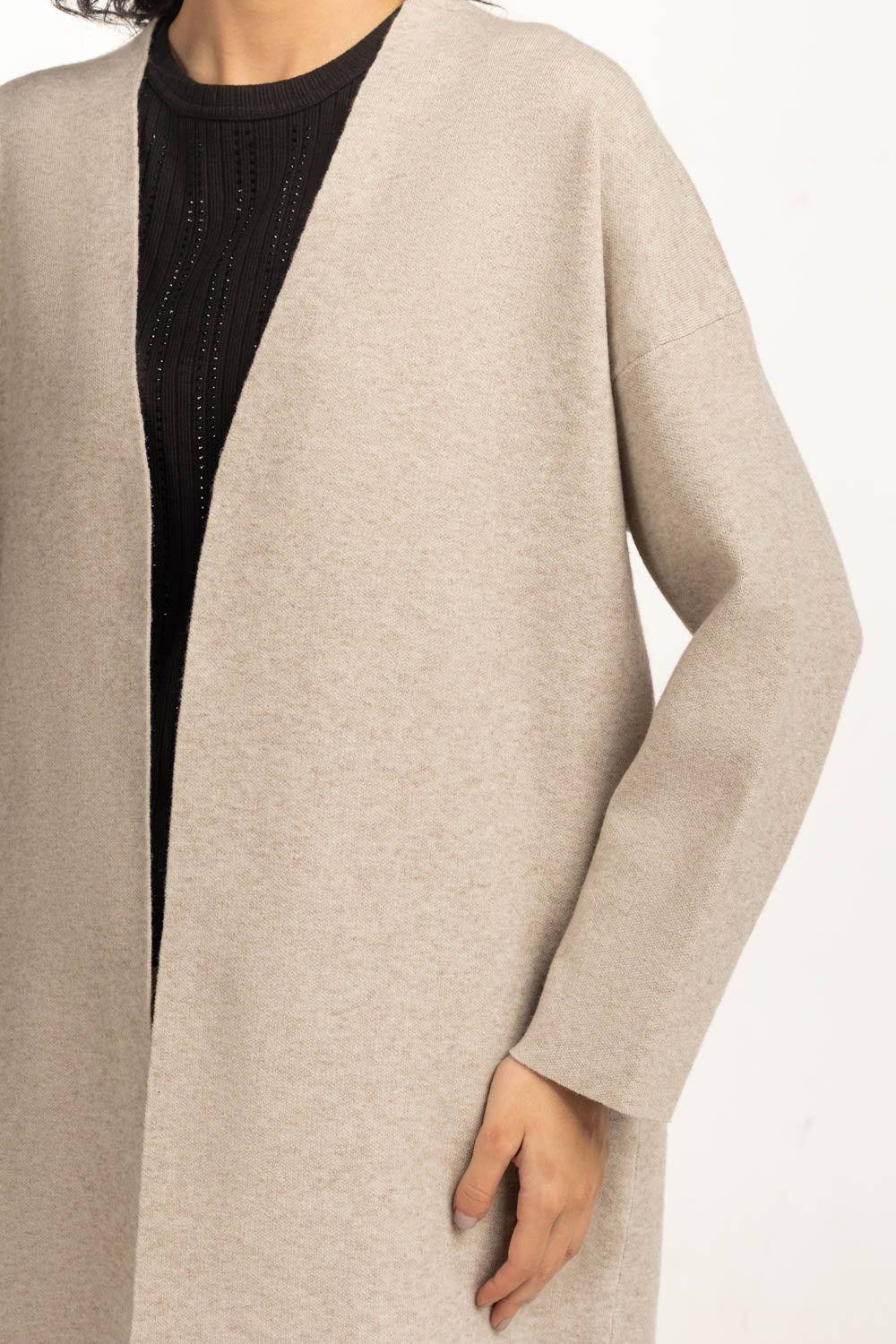 A front-open cardigan in beige that blends comfort with contemporary ease. The longline cut creates a graceful drape, while the regular fit ensures versatile styling. Ideal for winter layering, it pairs seamlessly with denim, dresses, or trousers.
