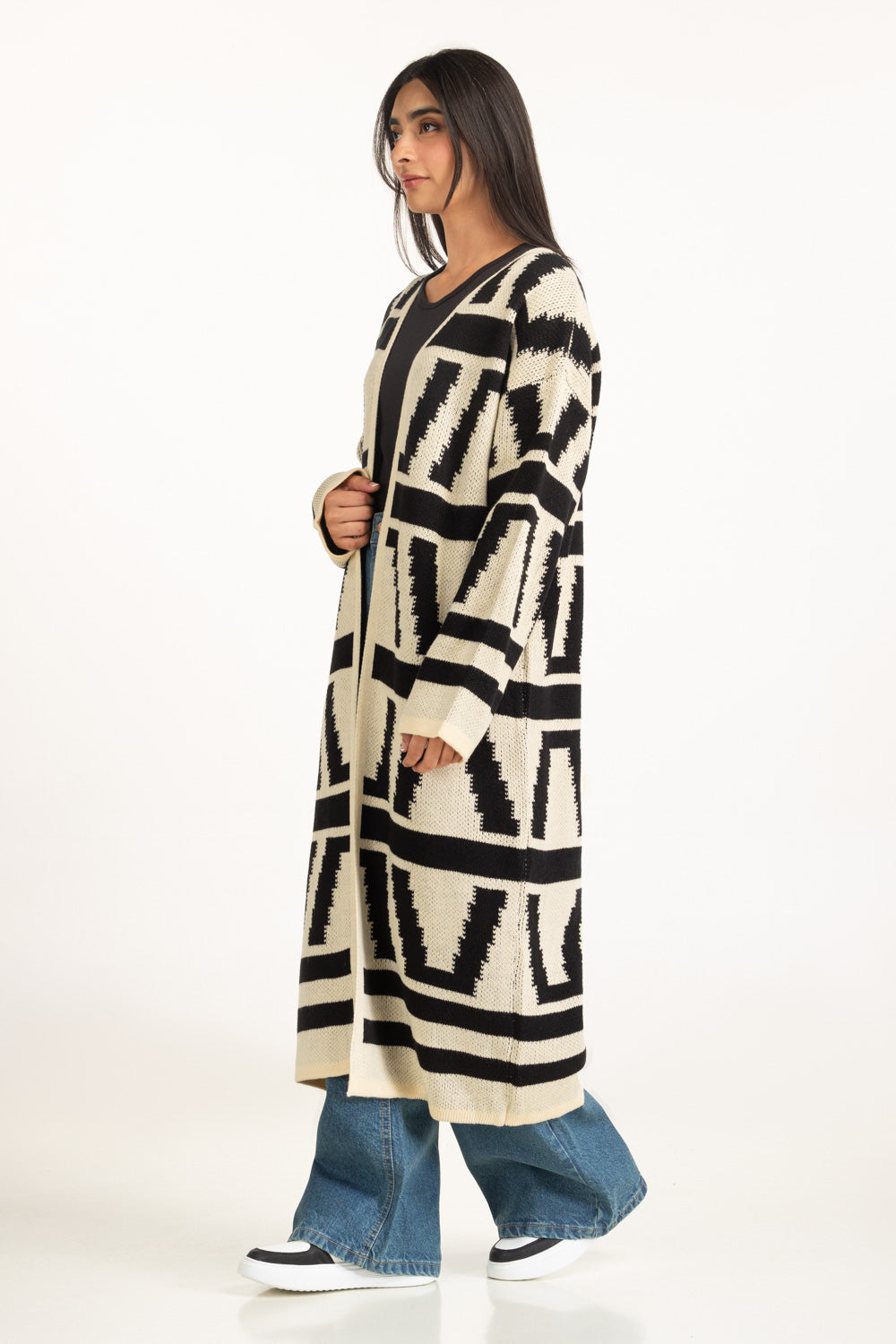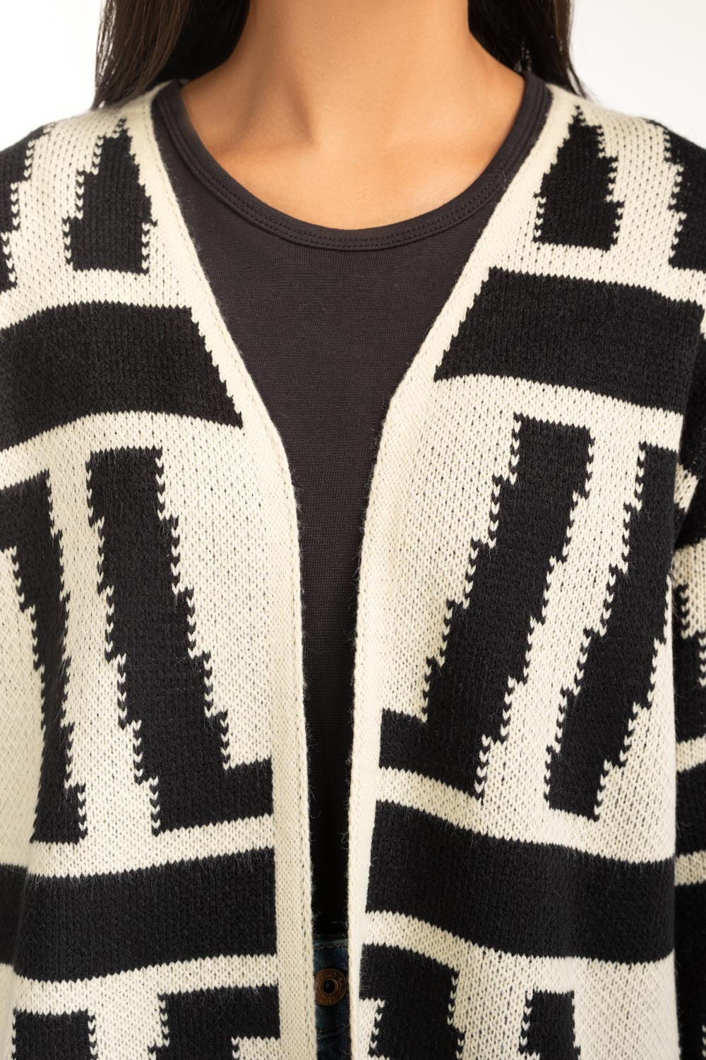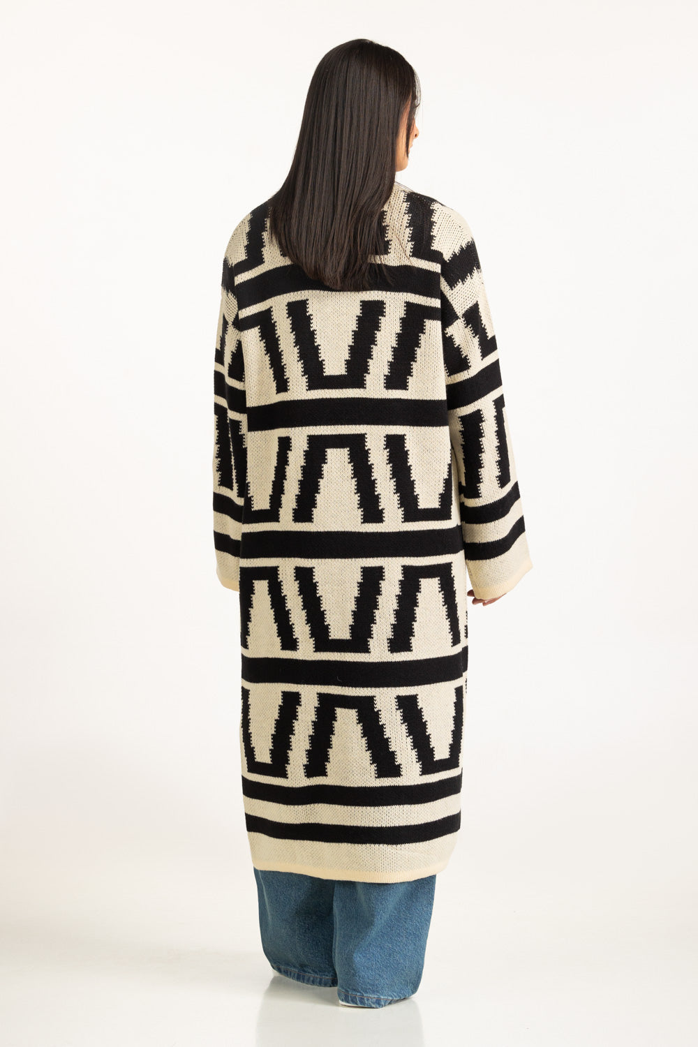 Highlighted by its striking pattern, this long cardigan is knitted to perfection for classy winter days. The regular fit offers a sleek drape, balancing comfort with sophistication. While its front-open silhouette creates fluid layering that adapts from casual to polished looks. ��������