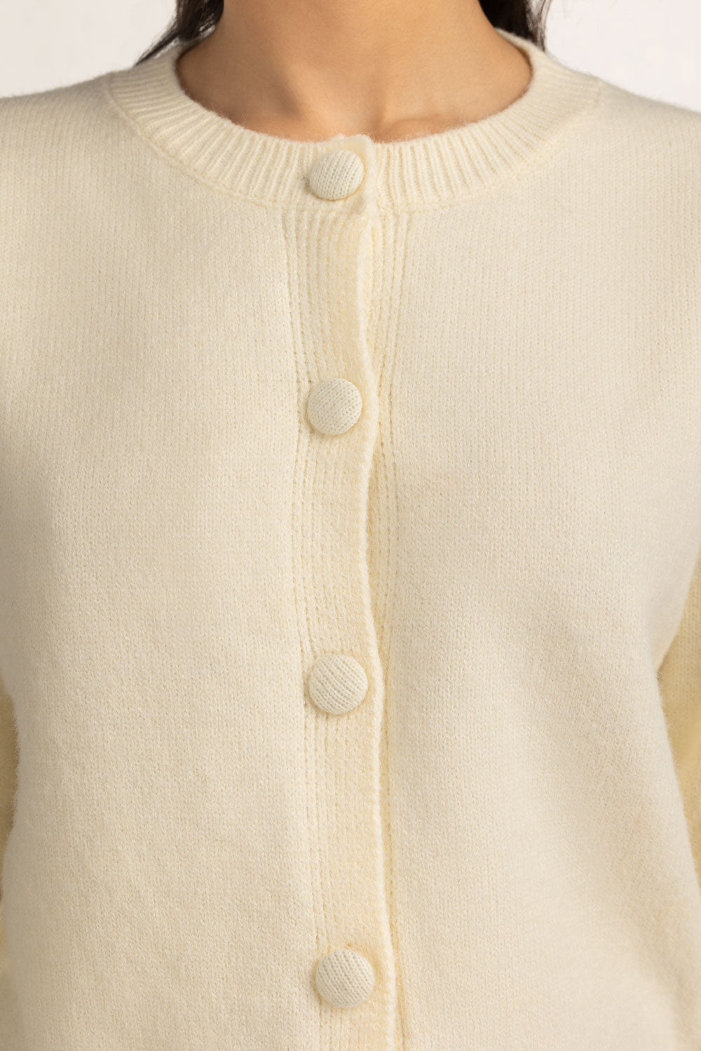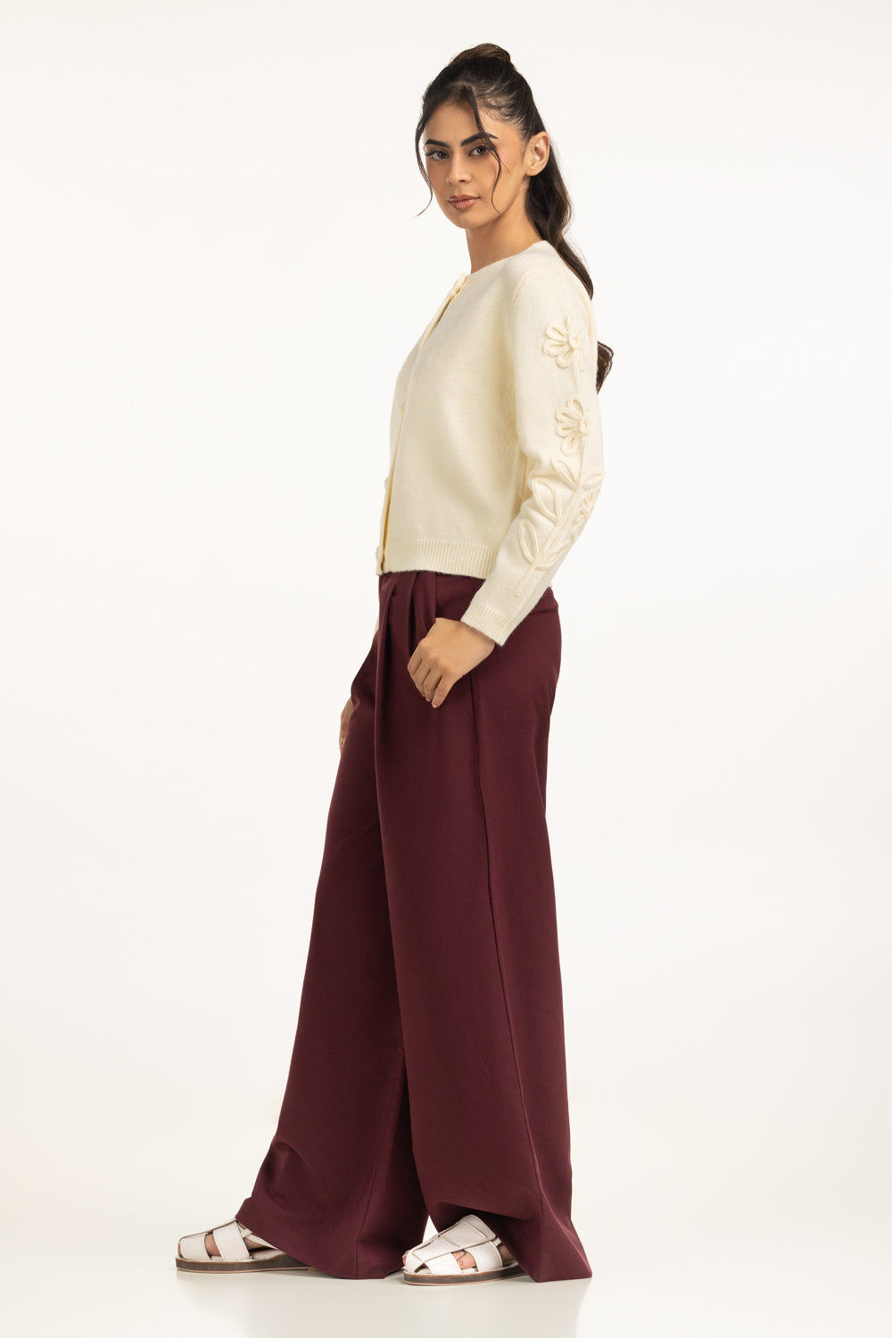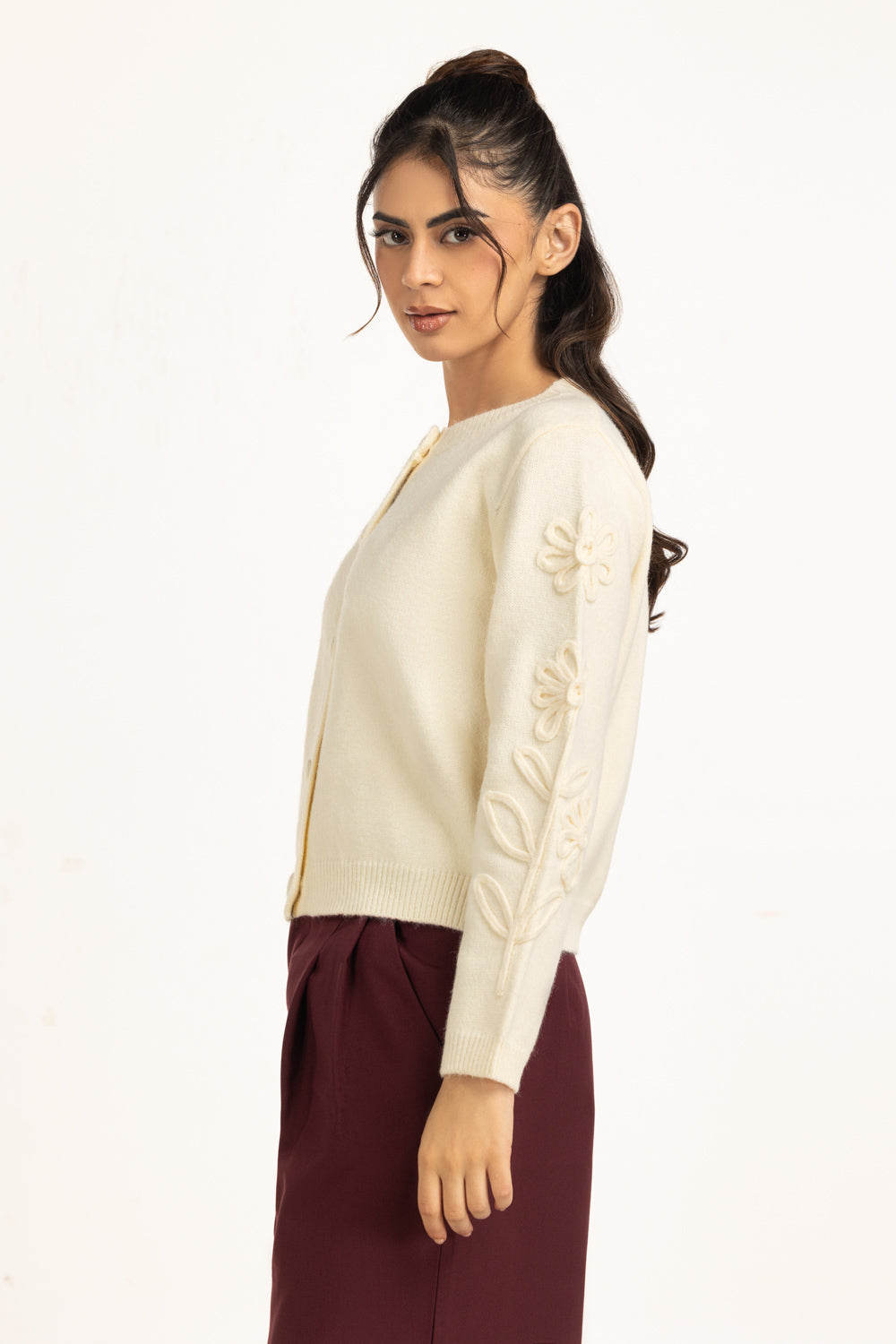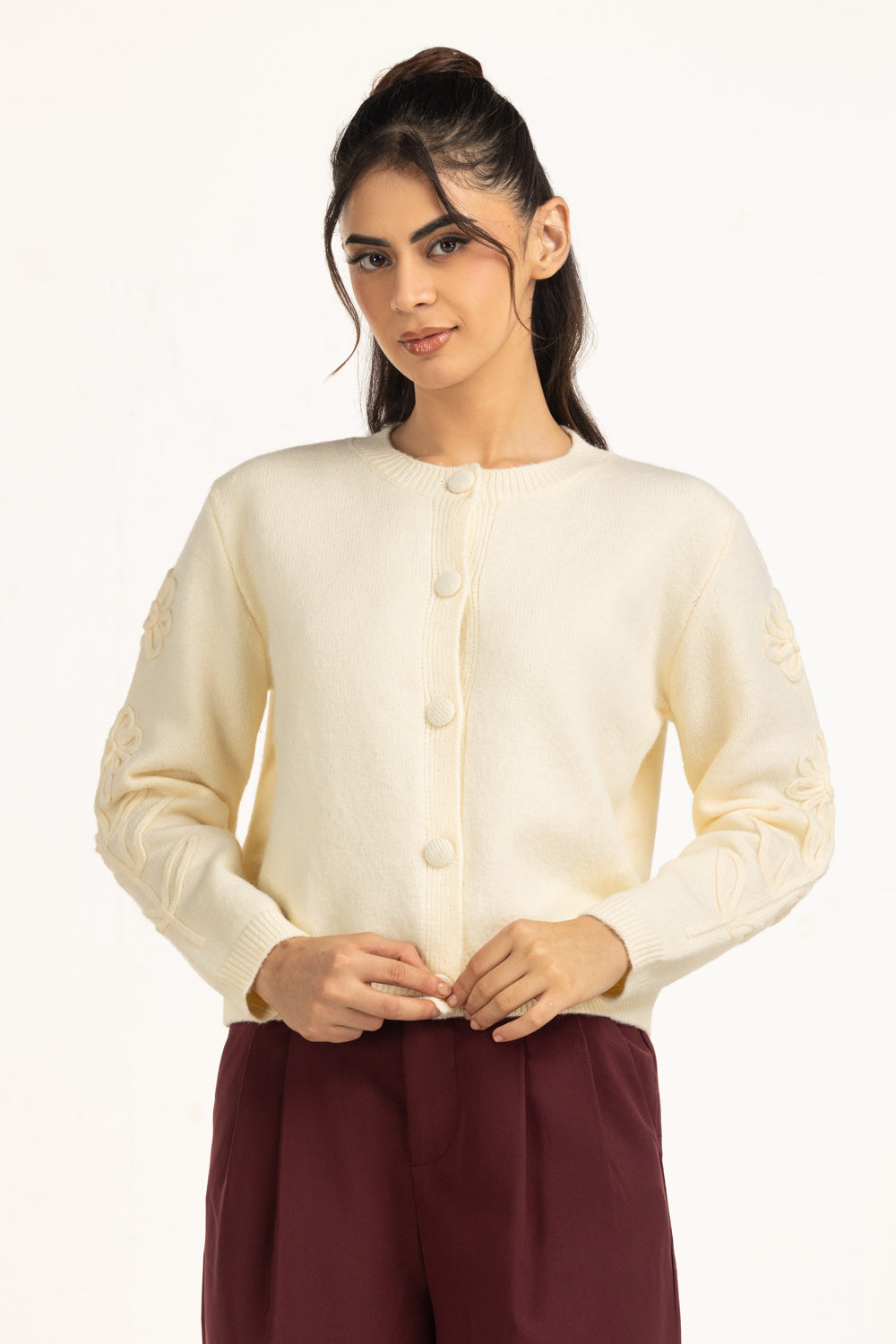 A contemporary winter essential, this short cardigan in a soft tone features floral motifs on the sleeves. The relaxed fit ensures comfort, while the knitted fabric delivers cozy warmth.