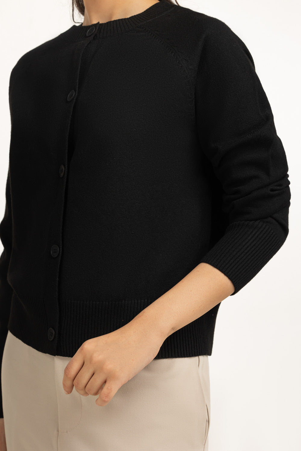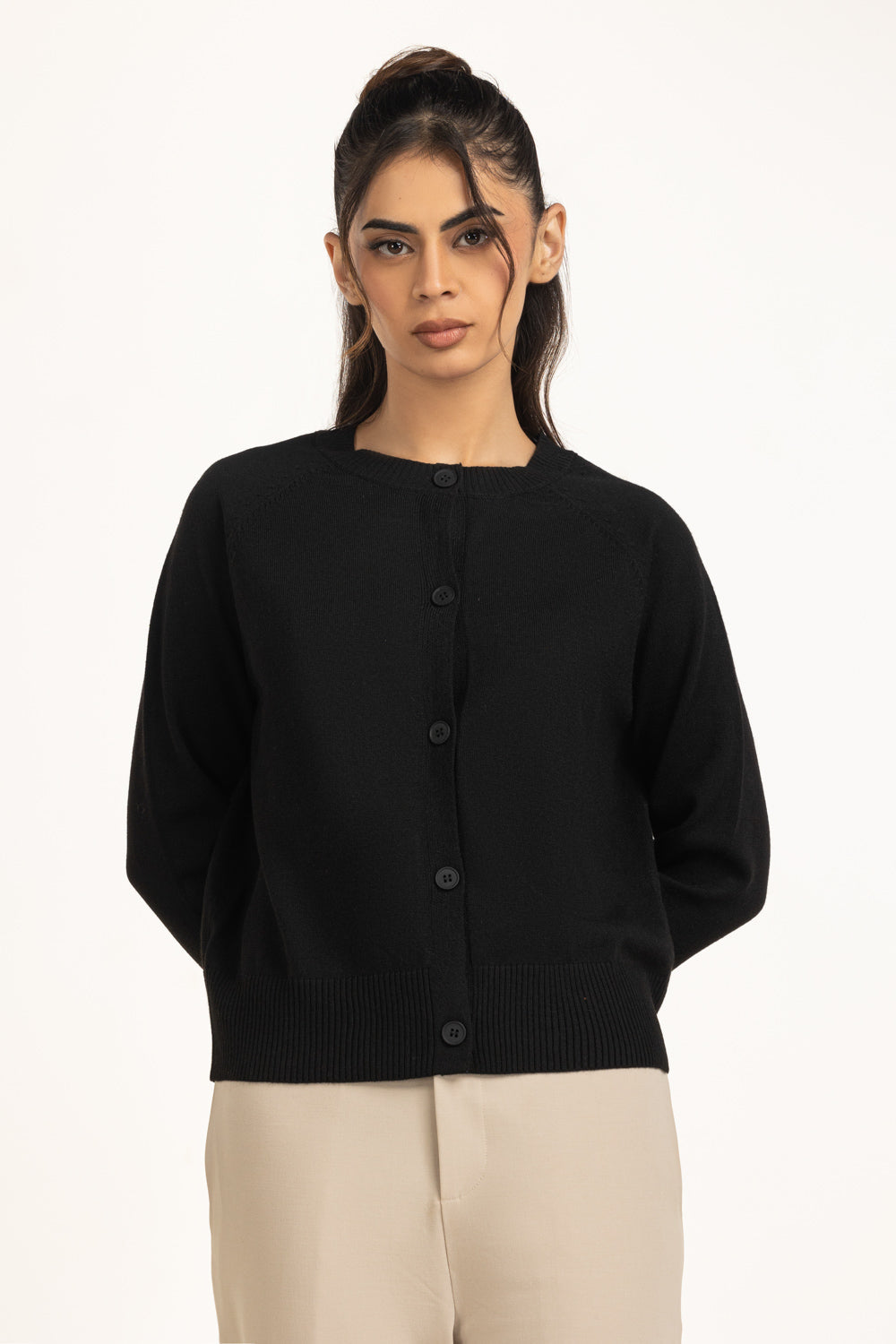 Short cardigan crafted in a regular fit, designed for effortless layering this winter. The button-down front adds versatile styling options, while the knit fabric provides warmth.