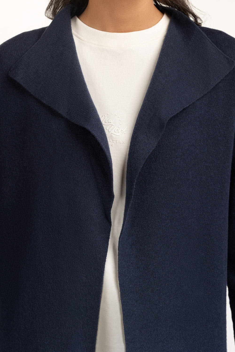 This front-open cardigan blends warmth with contemporary design no matter how you layer it. The longline silhouette creates fluid movement, adding edge to winter basics. Lightweight yet cozy, it transitions easily from work to leisure.