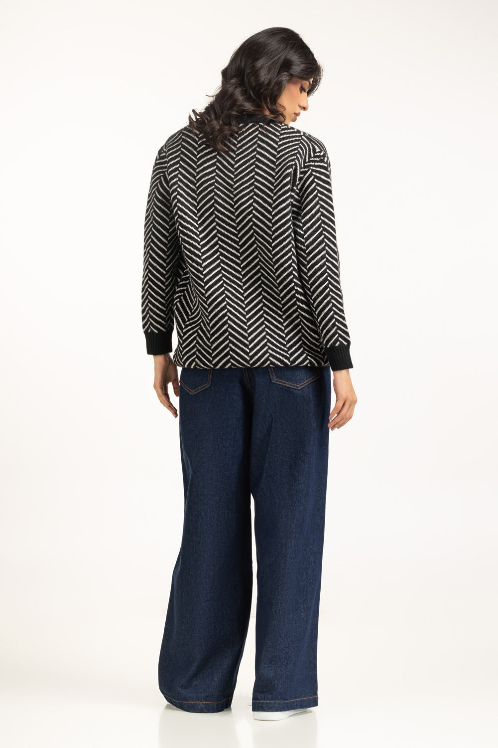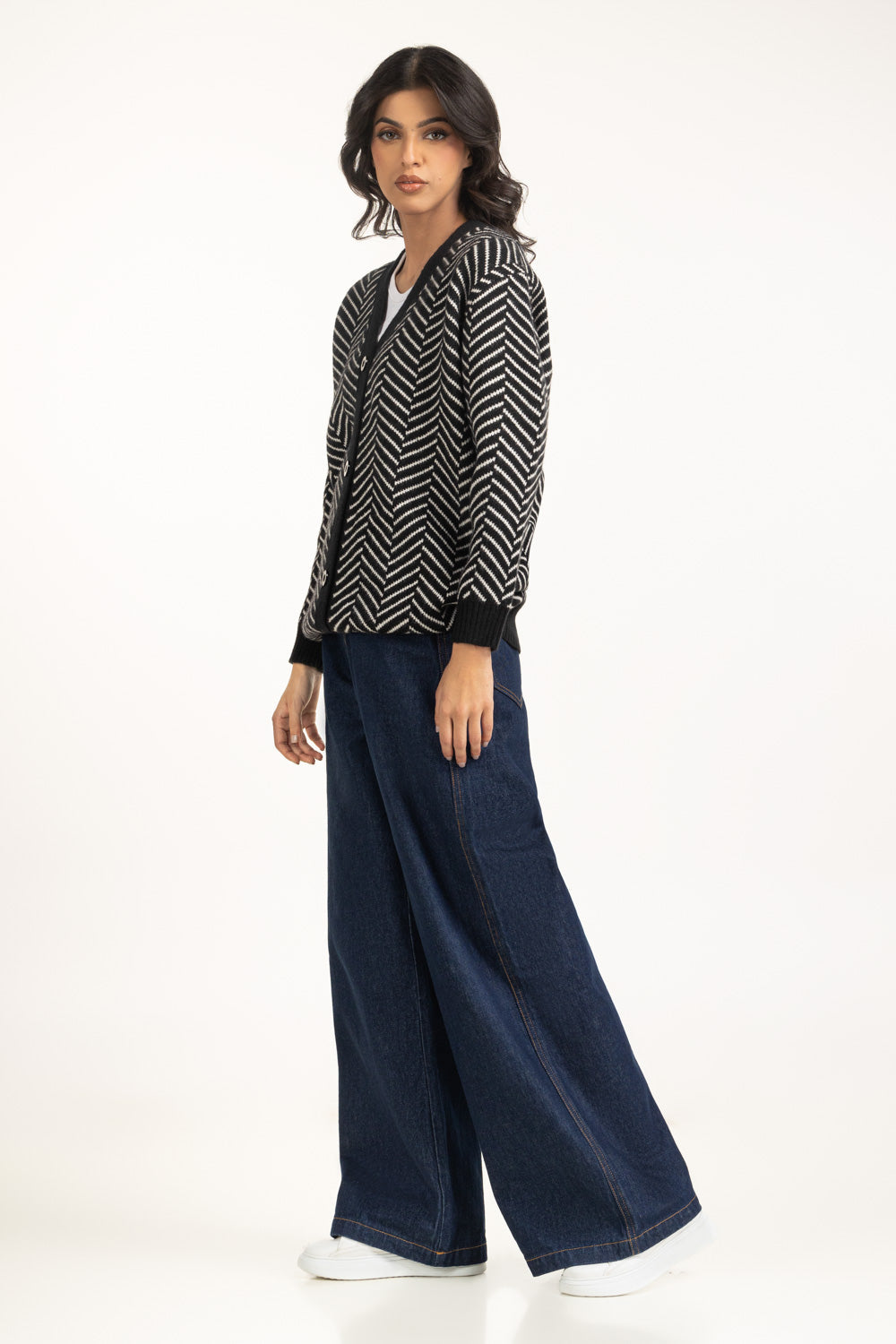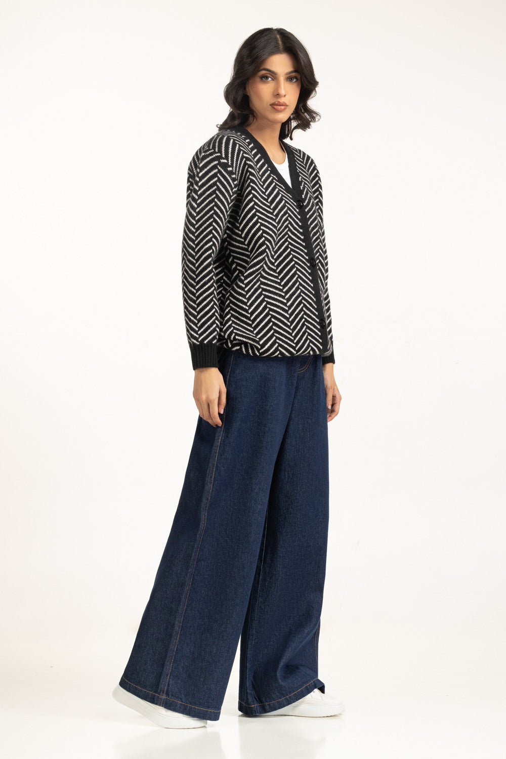 A striking black and white pattern gives this regular-fit cardigan its contemporary edge. The button-down style adds versatility, while the v-neckline lends a refined silhouette. Crafted in a knitted texture, it delivers warmth with an understated premium feel.