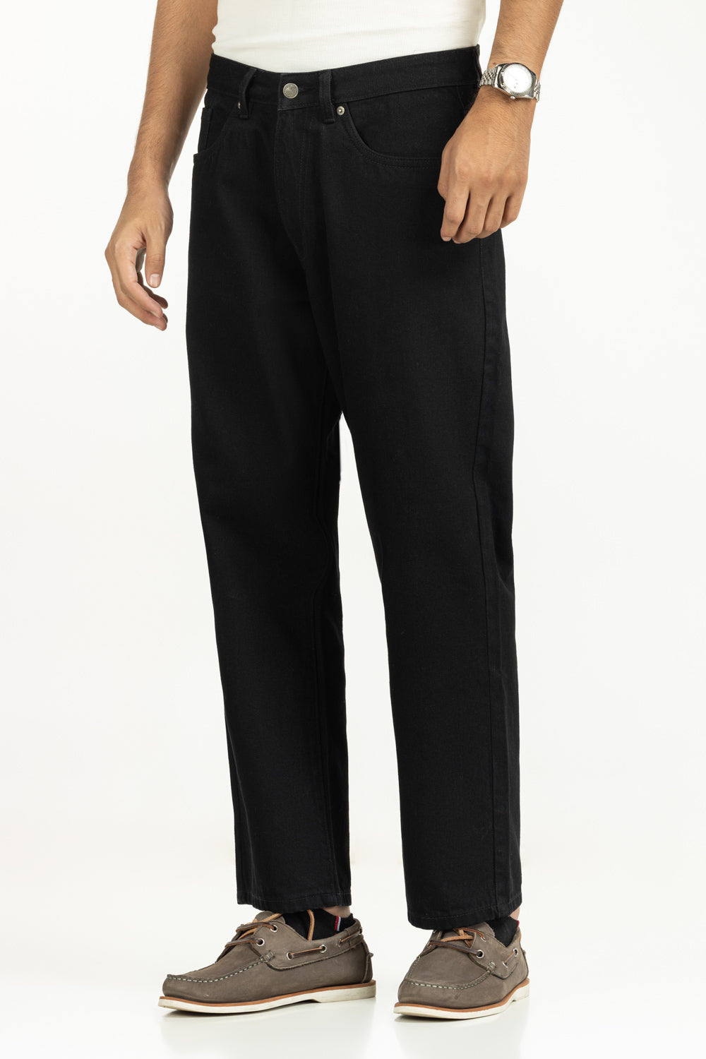 Designed with everyday function in mind, these relaxed-fit jeans are cut from pure cotton for durability. The classic black finish delivers versatility, making them a reliable pick for both casual and refined pairings.