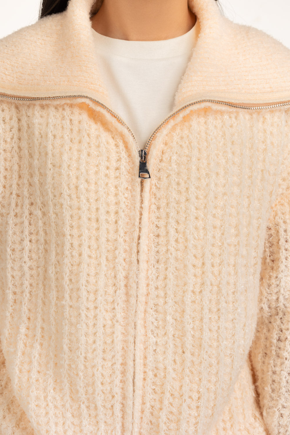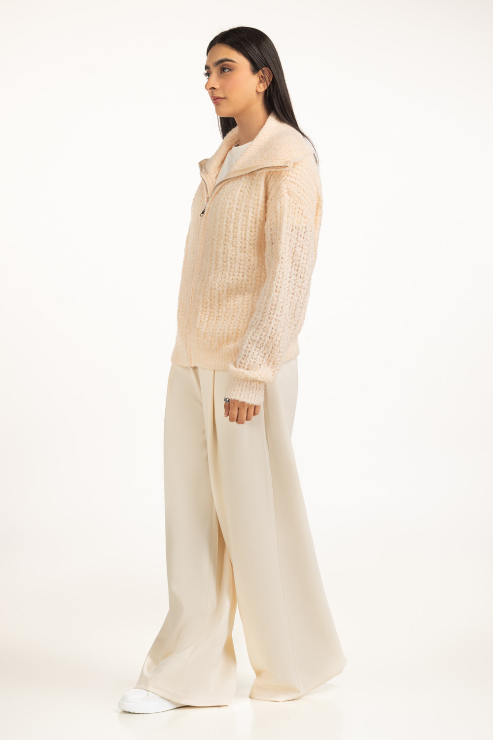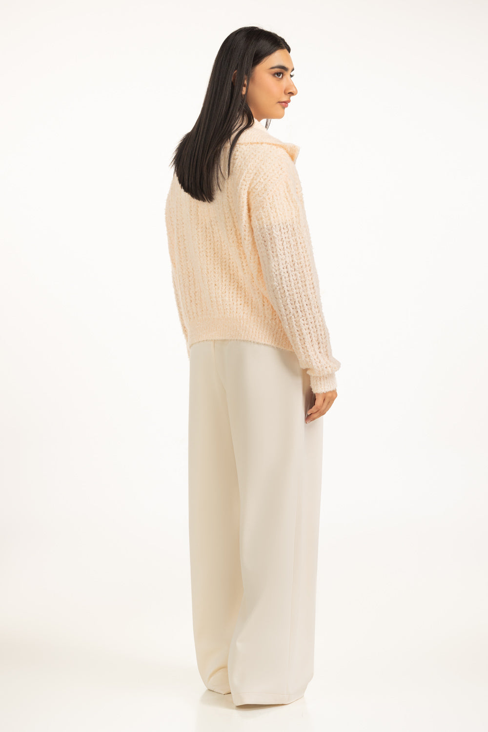 This beautiful light pink sweater redefines chic winter dressing. Its regular fit drapes naturally, allowing ease of movement with subtle sophistication. The structured collar pairs seamlessly with the zipper front. Carefully crafted with a feminine vibe for your winter wardrobe.��������������������