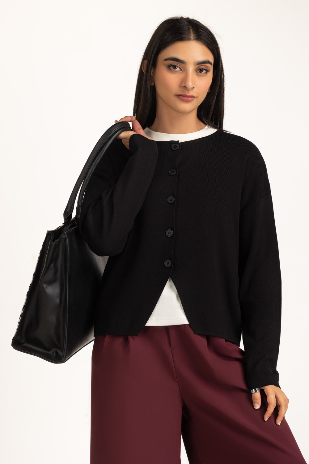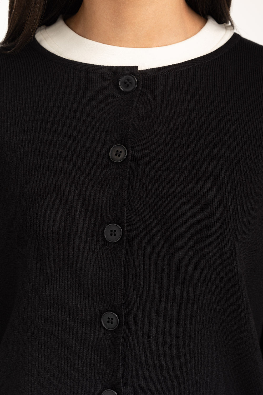 Minimal and classic, this cardigan in black is cut in a relaxed fit for effortless movement. Its button-down design allows versatile styling, while the round neckline lends a refined finish. Crafted from 100% viscose, for comfortable fit and soft texture.��
