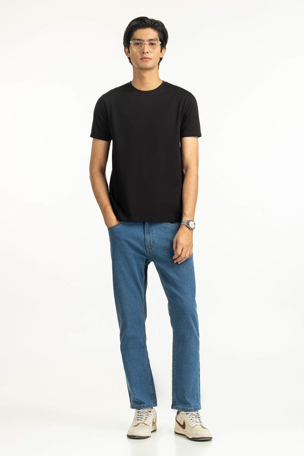 This crew-neck black t-shirt delivers simplicity in a smart fit design. The cotton fabric provides warmth and breathability during winter days. Its clean construction, makes it essential for sharp, modern dressing.