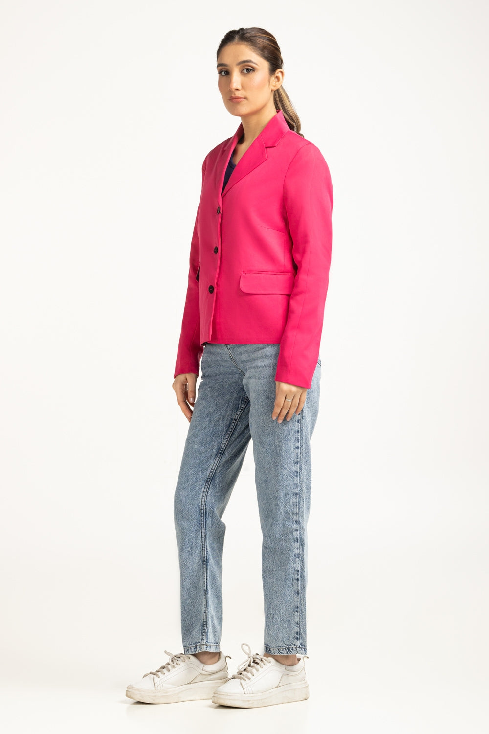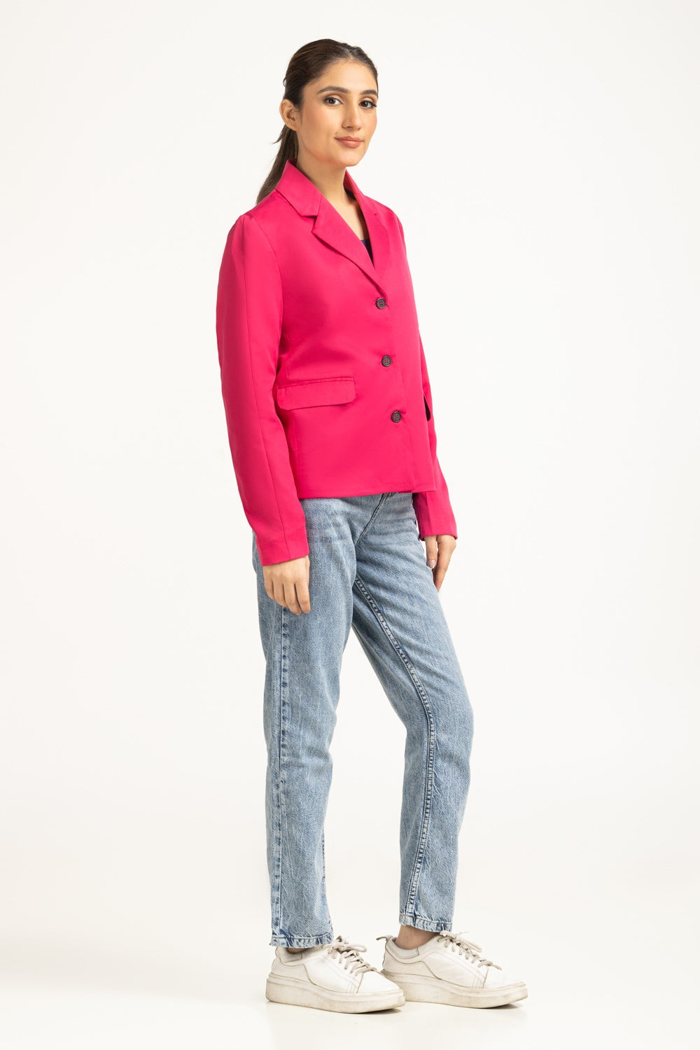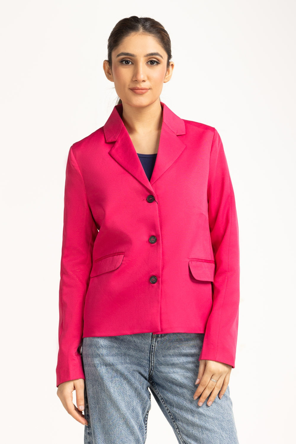 A bold statement piece, that blends structure with a contemporary flair. This beautful jacket featured sharp tailoring with two front pockets, perfect for elevating any look. Crafted from premium fabric, it offers multiple styling options for different occasions.