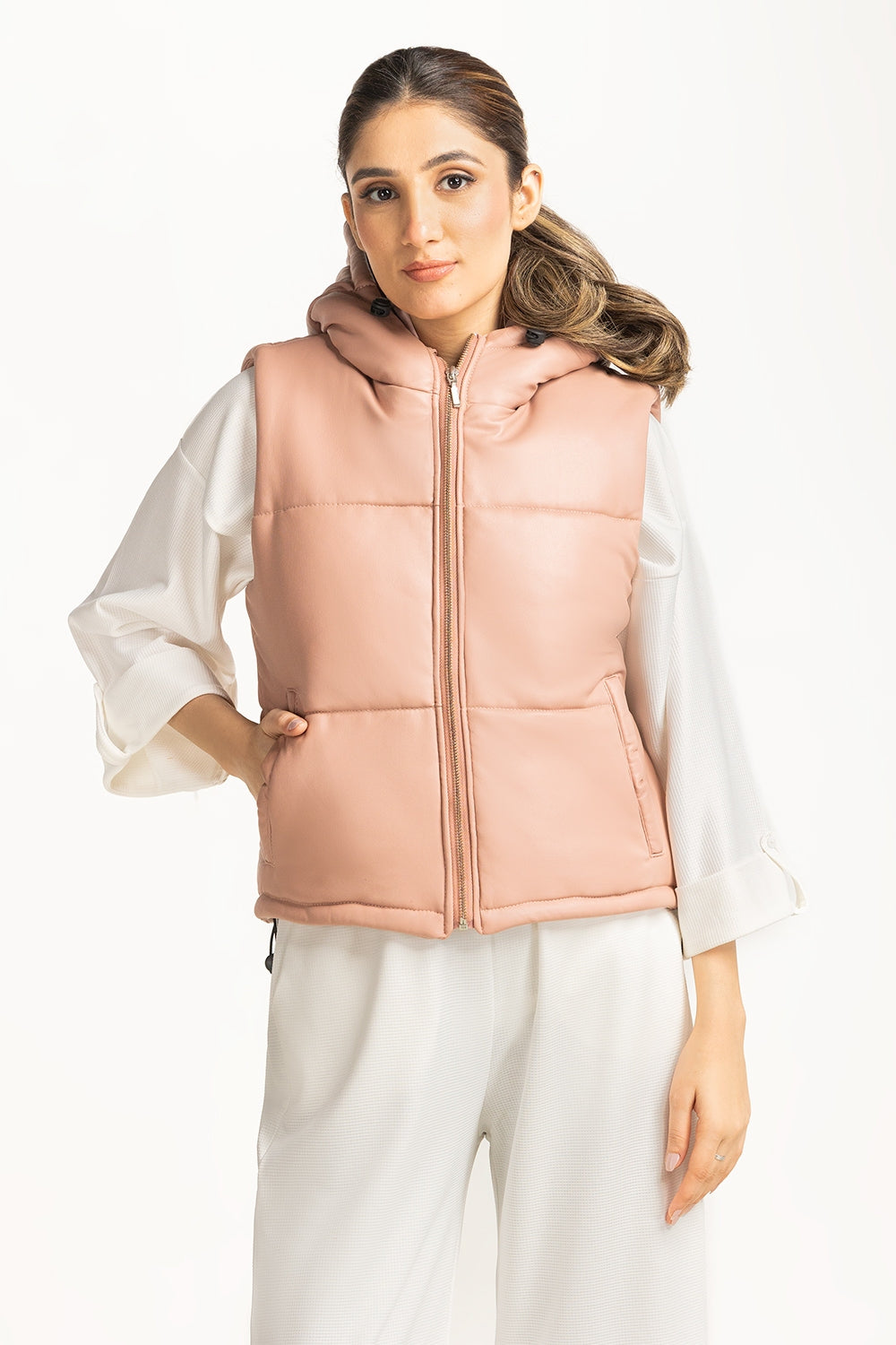 Upgrade your everyday casual look with this beautiful hooded jacket in a shoothing hue with a zipper...