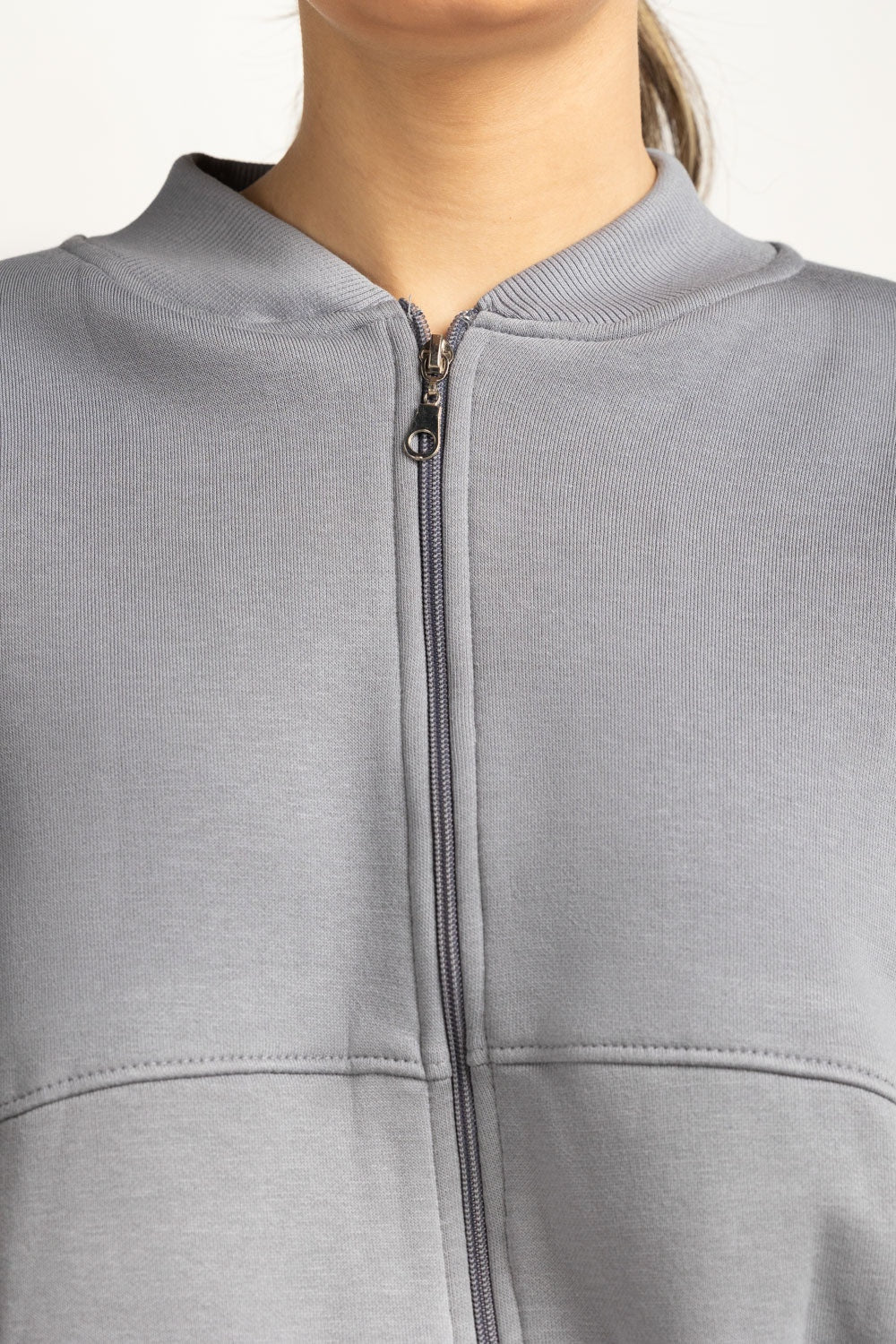 This zipper jacket, featuring a classic ben collar, offers a refined take on casual outerwear. The soft knit fabric and streamlined design provide both comfort and contemporary style, making it a versatile layering piece.