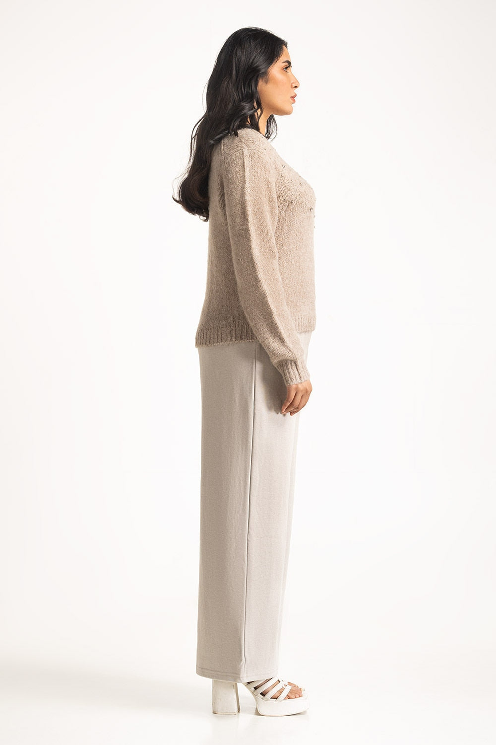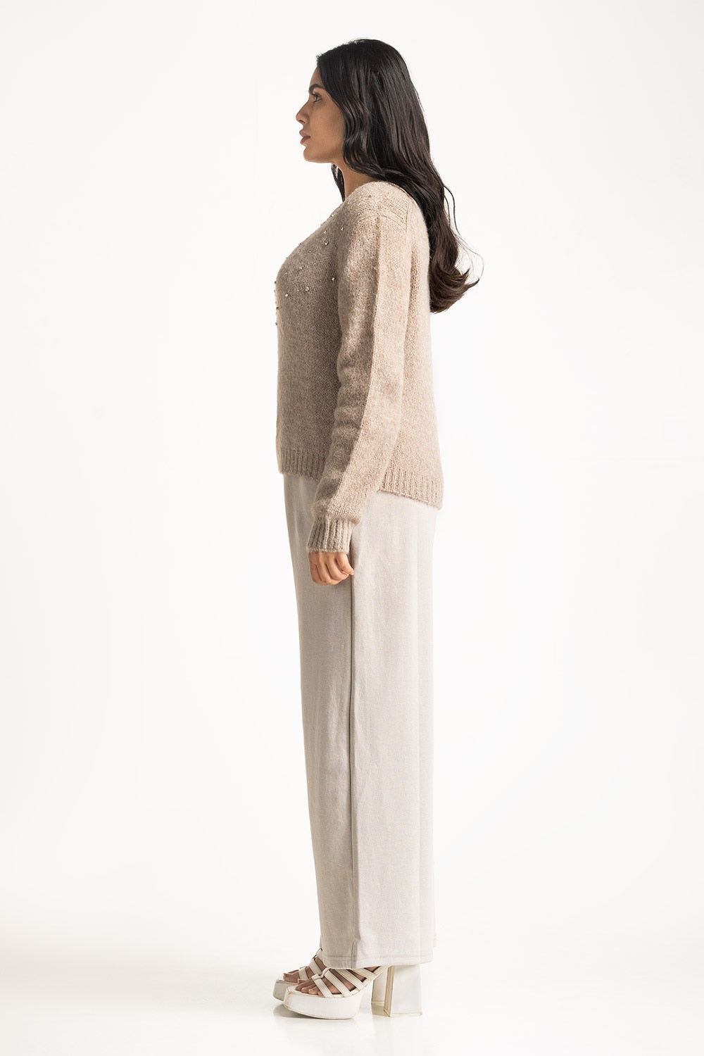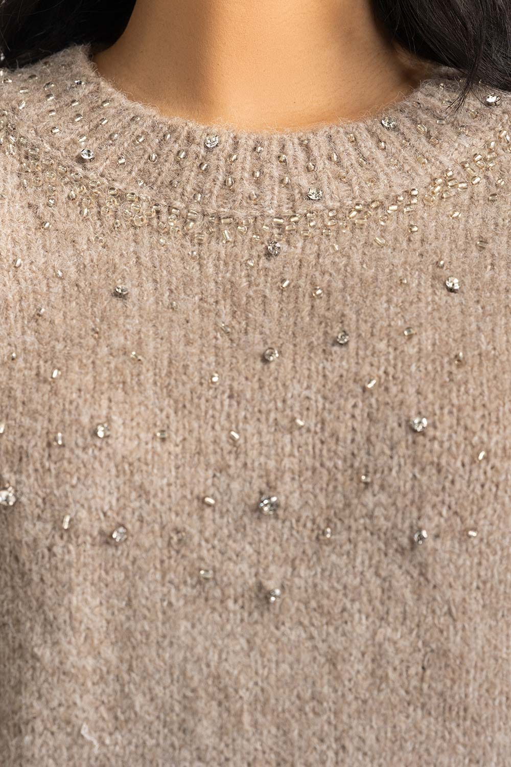Oversized sweater featuring shimmery diamond beads that adds a touch of luxury. It's regular fit provides ultimate comfort, making it perfect for cozy evenings.
