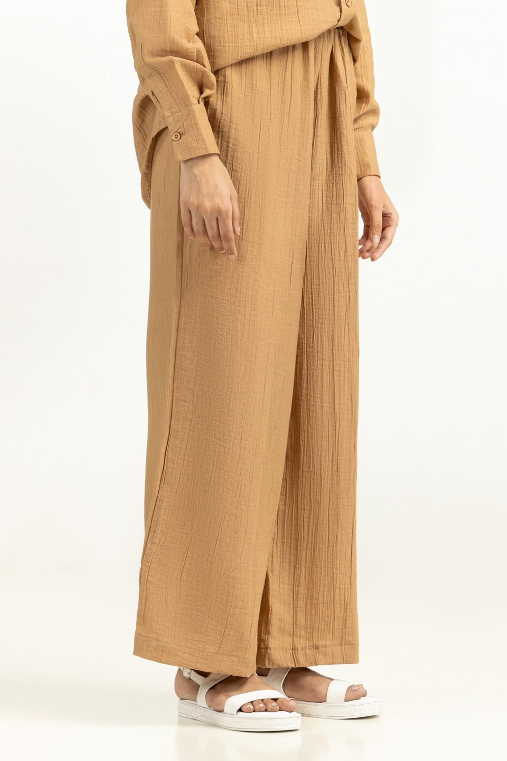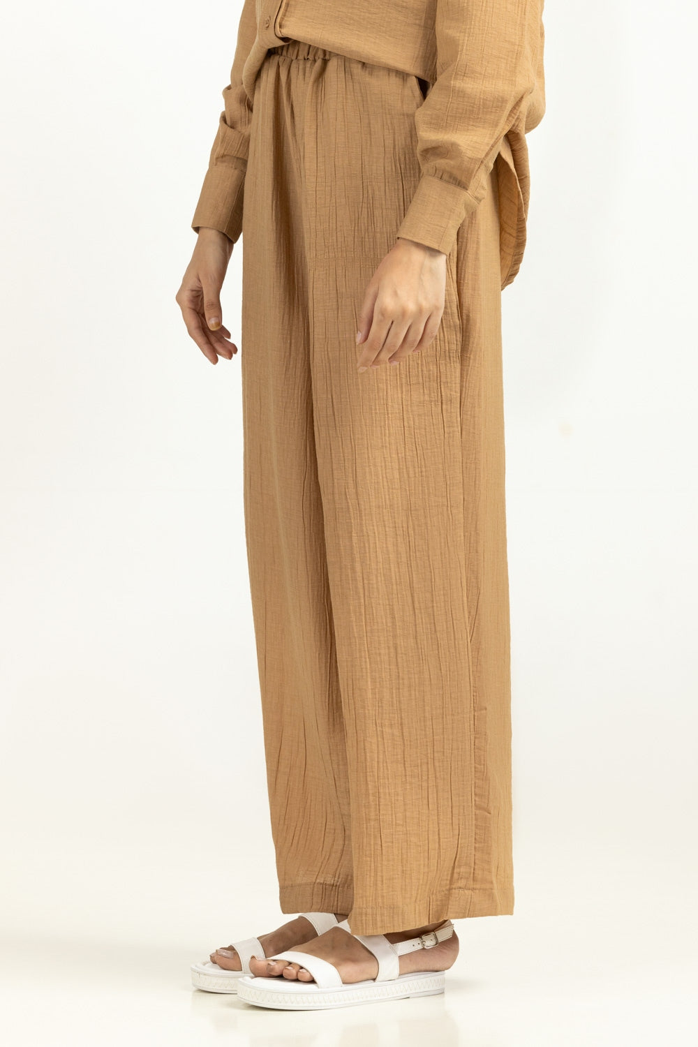 Neutral but chic, these stunning trousers offer a subtle look with a textured finish and a comfortable stitch. The silhouette stays sharp while the tone keeps it warm. Pair it with your favourite top for multiple styling options.