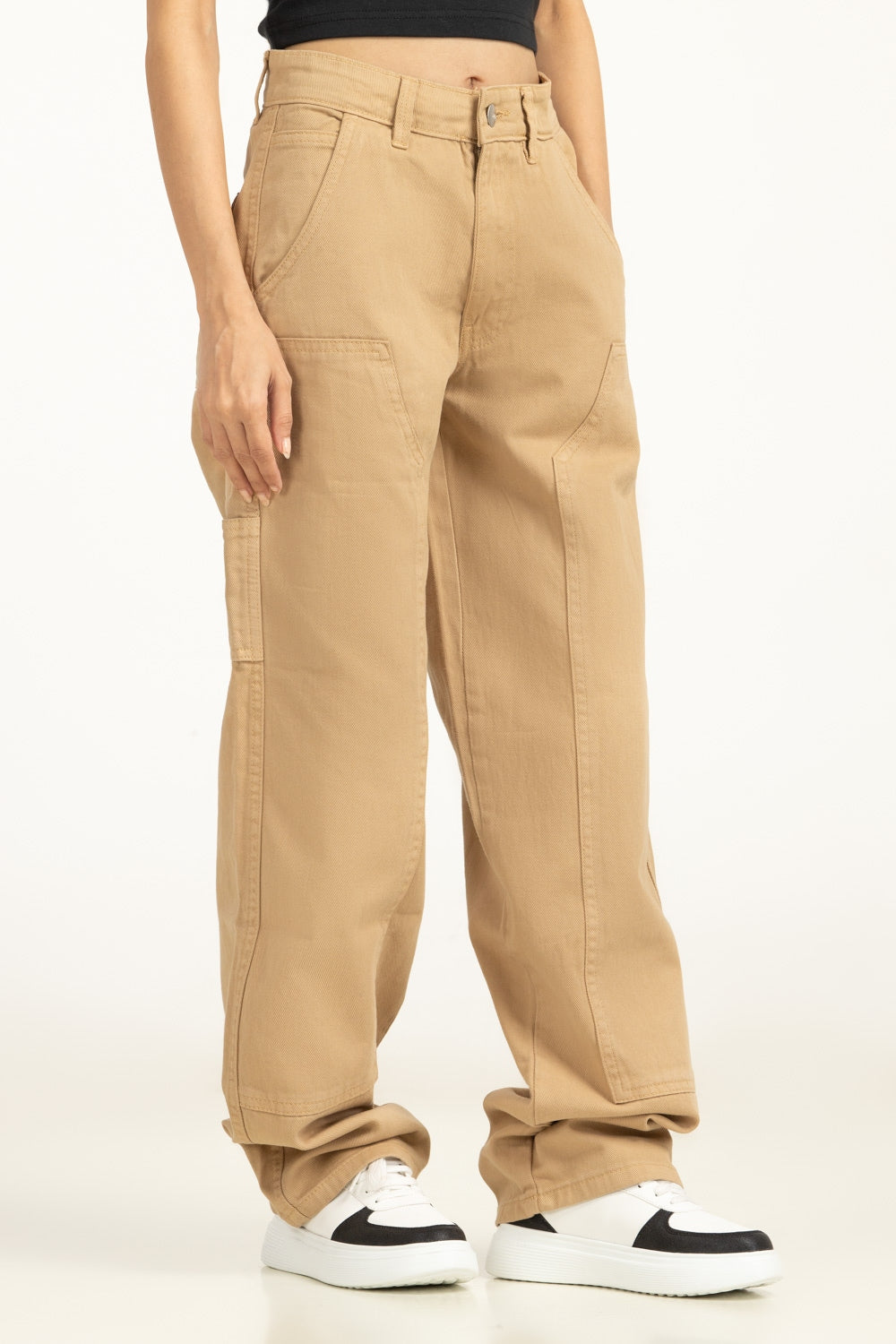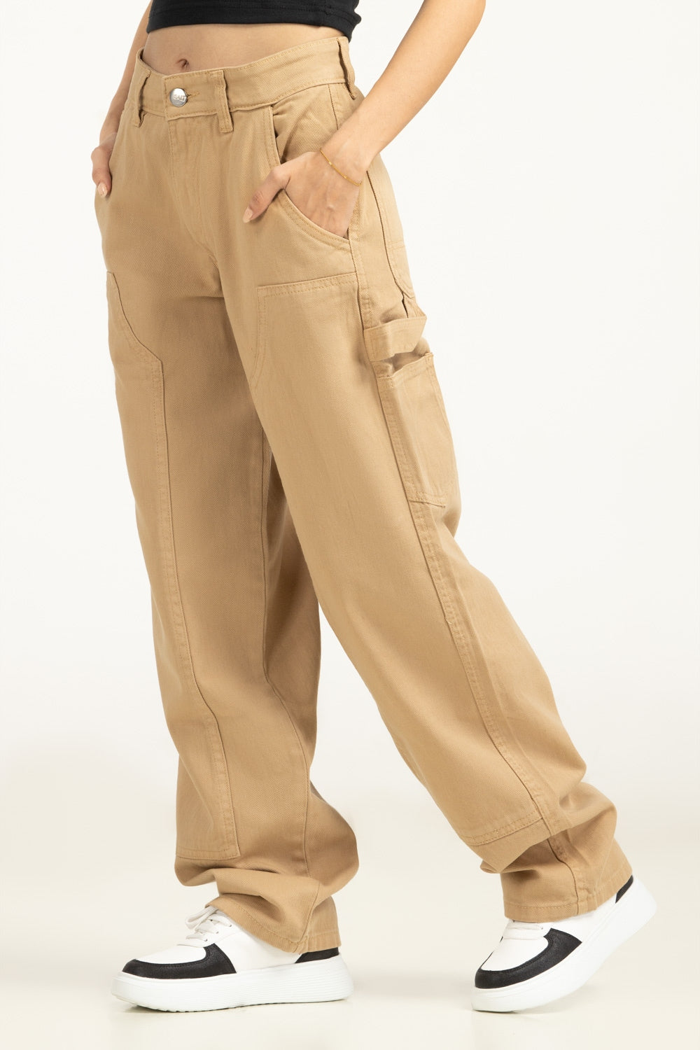 Designed in a soft hue, these trousers blend utility and ease with wide pockets and a relaxed fit. Crafted in 100% cotton, they’re breathable, functional, and on-trend. A perfect pick to make you lool chic.