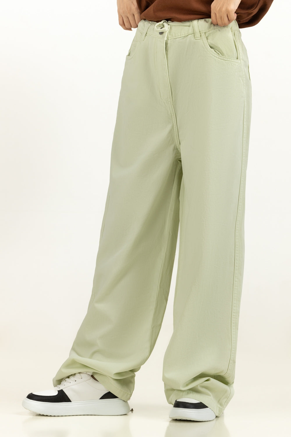 These 100% cotton trousers with a wide-leg silhoutte deliver a modern silhouette with a focus on comfortable wear. The wide-leg creates a youthful and effortlessly chic aesthetic, expressing your vibrant personality.