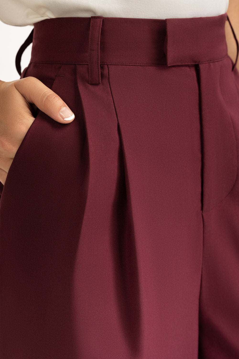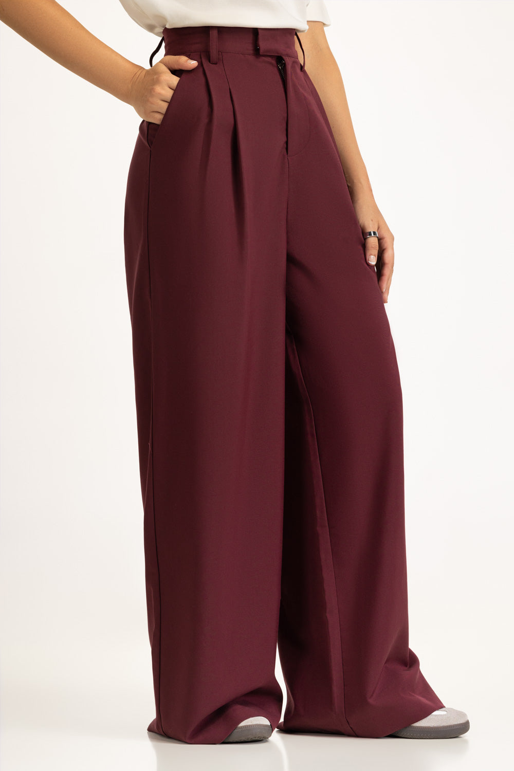 Tailored in a dark purple hue, these wide-leg pants redefine winter sophistication. The sleek waistline creates a contemporary silhouette, while the defined pleats add a touch of modern structure. Designed for comfort without compromising style.