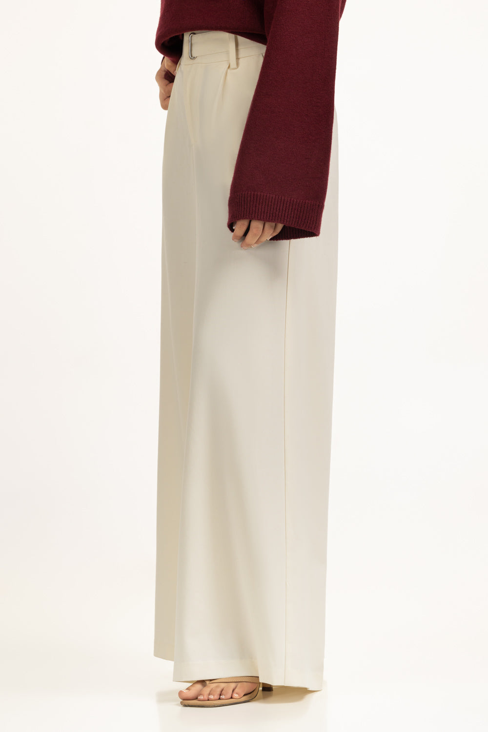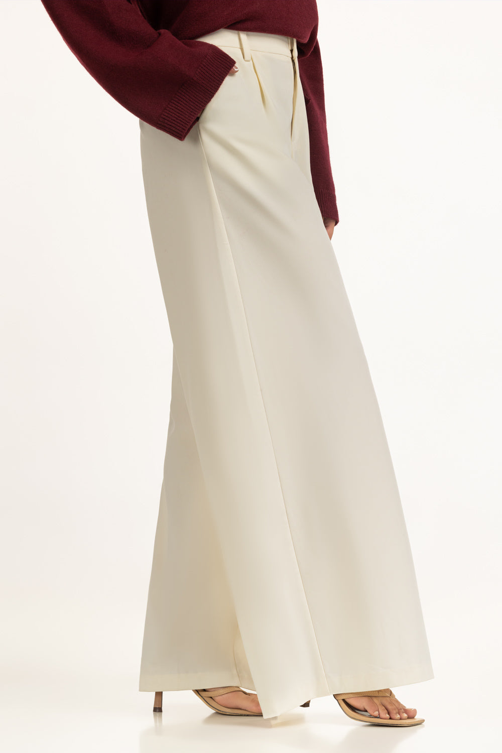 Tailored with precision, these off-white pants strike the perfect balance between sleek modernity and comfort. Its defined pleats give a contemporary edge, while the wide-leg cut flows with ease.