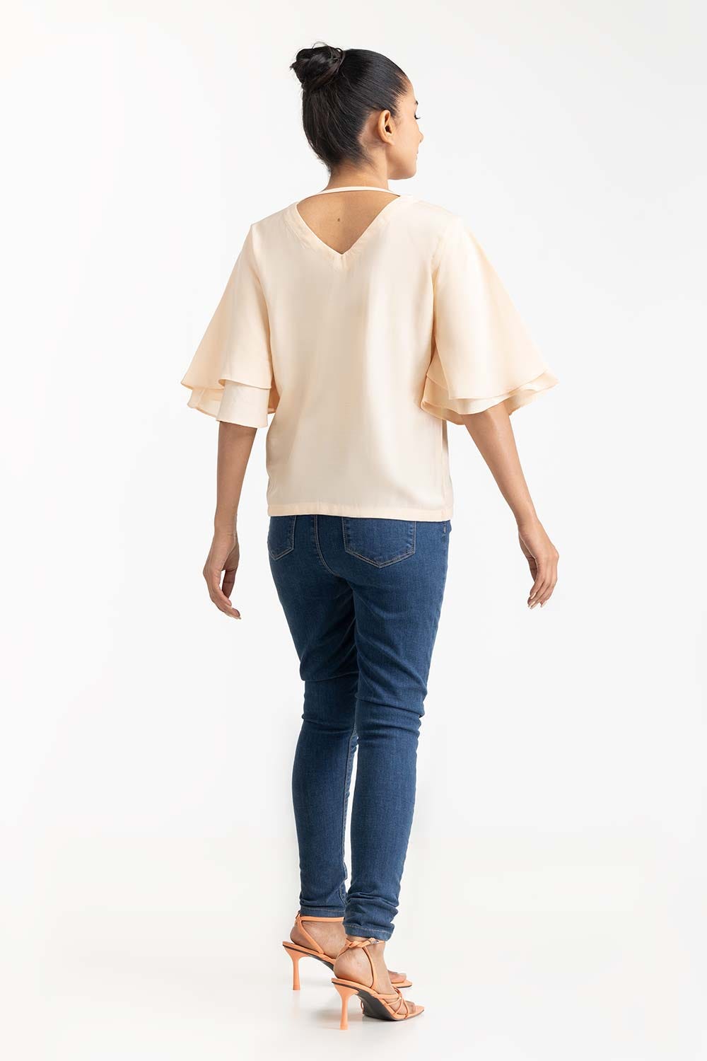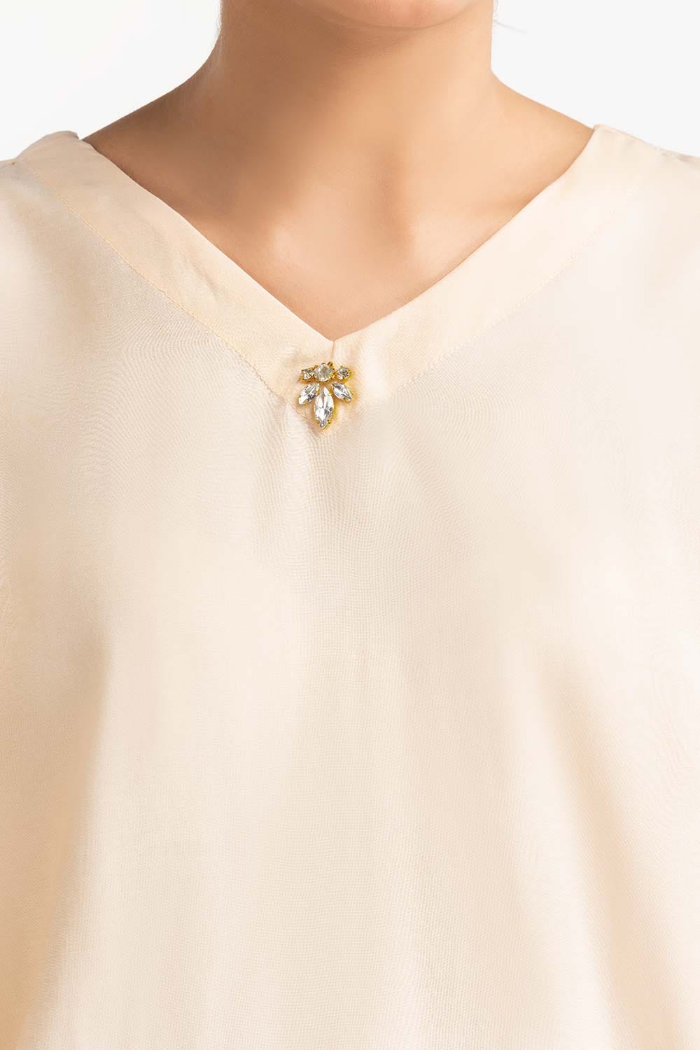 Blouse With V Neck And Double Flared Sleeves, Diamontees Detail On Front.