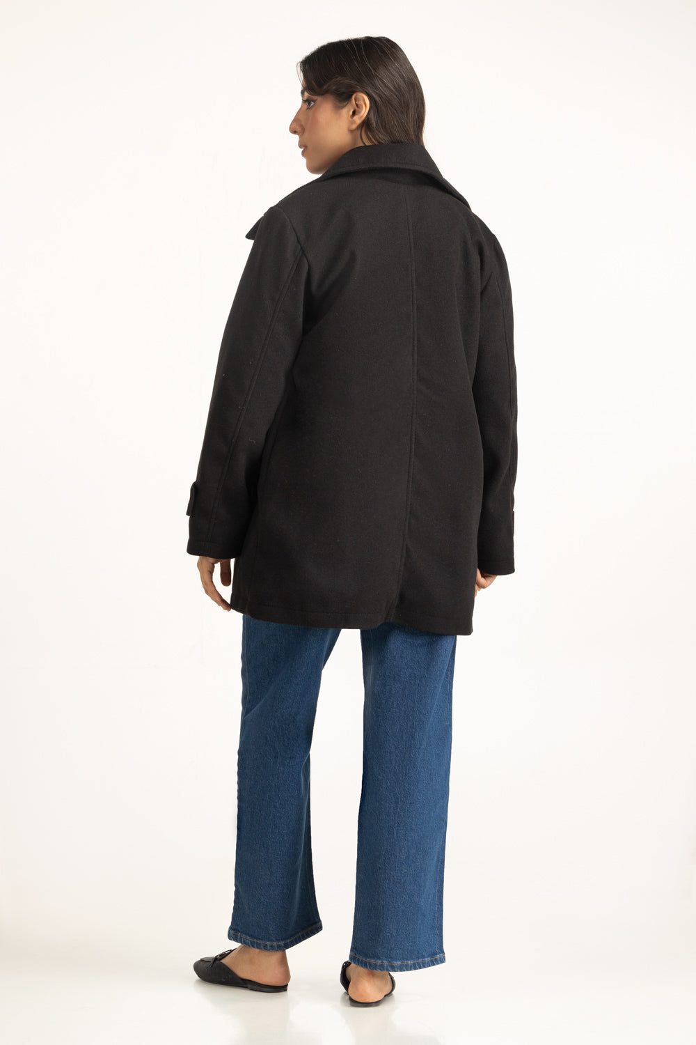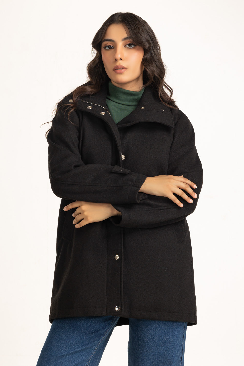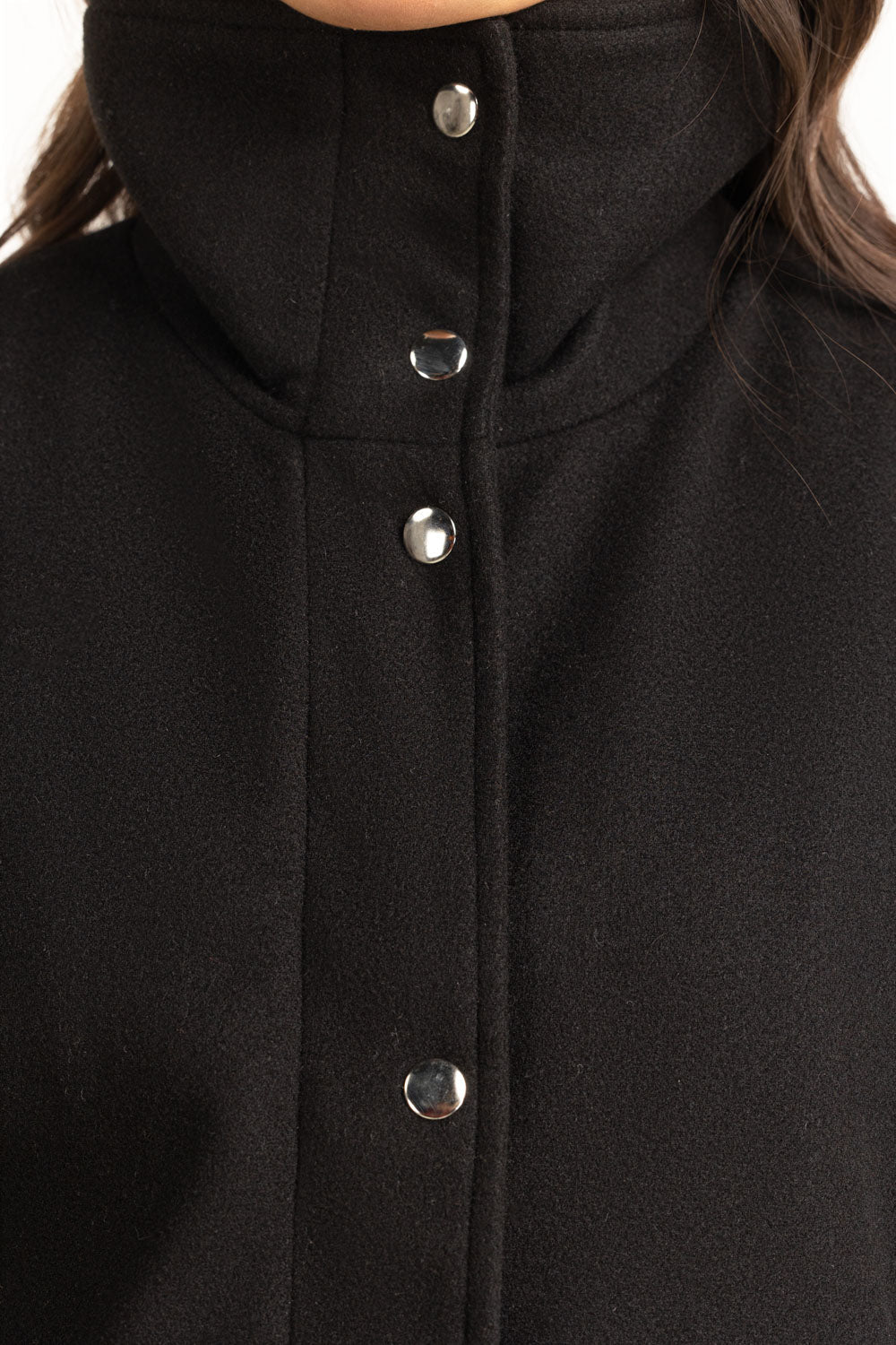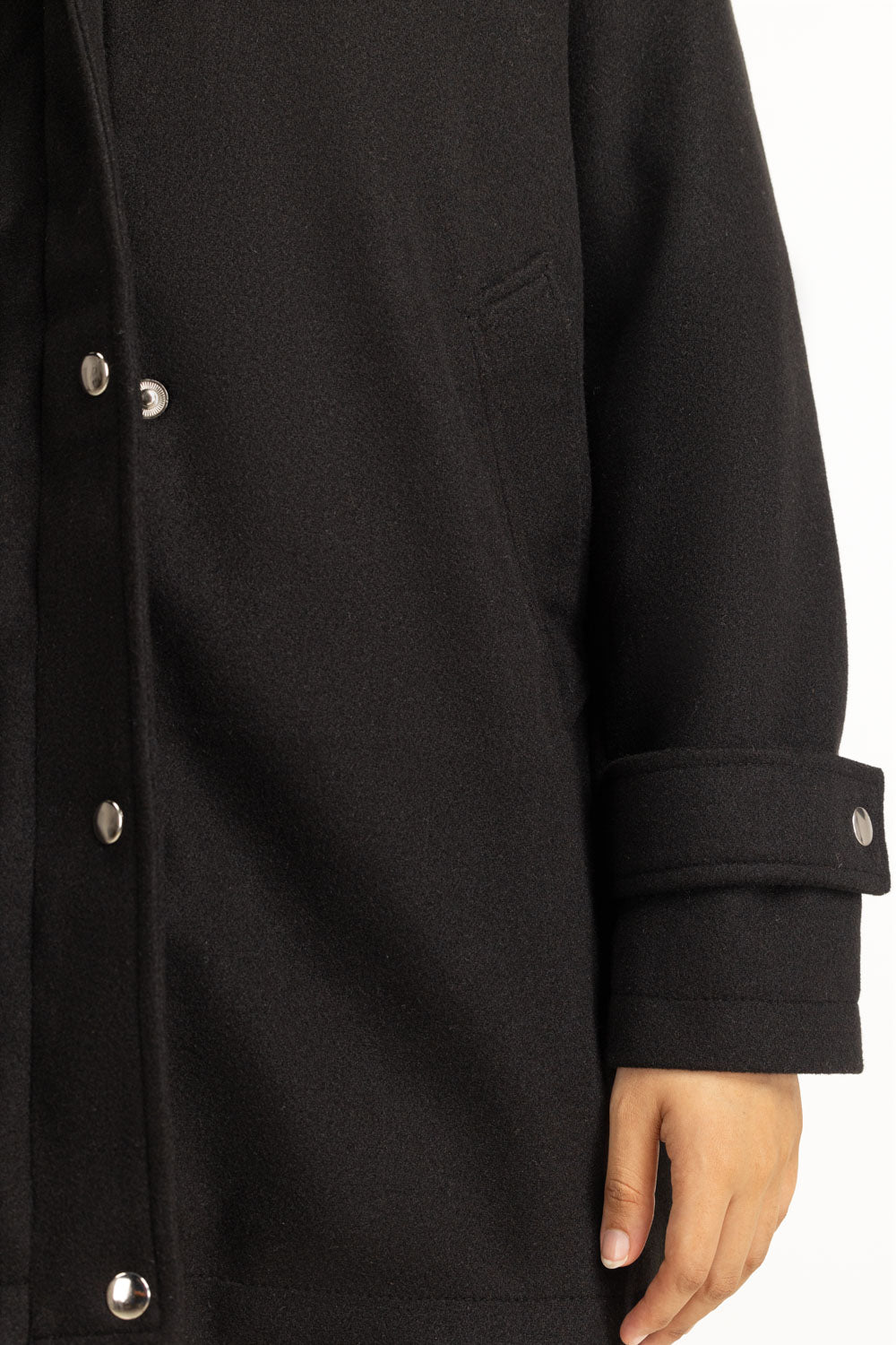 This coat in black redefines modern outerwear with its clean silhouette and secure zipper front, along with a twitch button closure. The structured design offers a sophisticated edge, while its cozy interior keeps the cold at bay. A go-to essential for crisp winter styling.