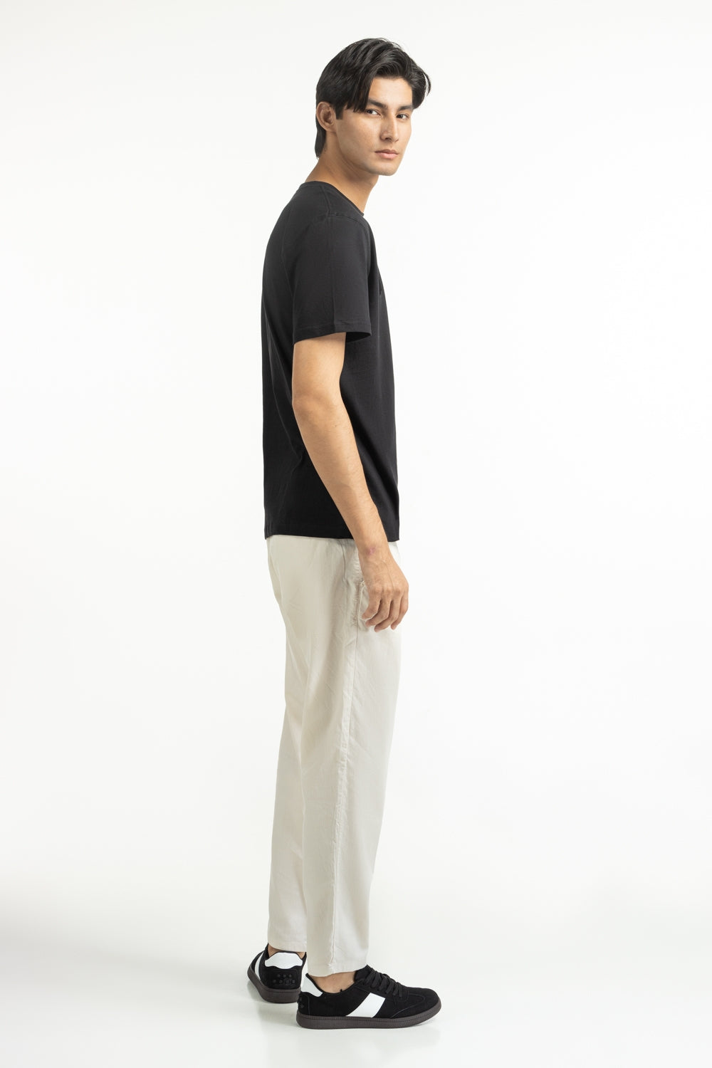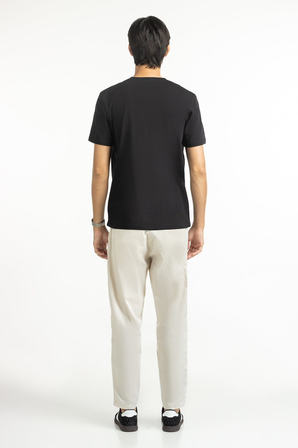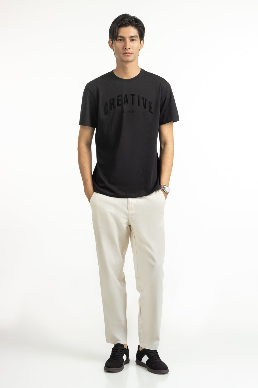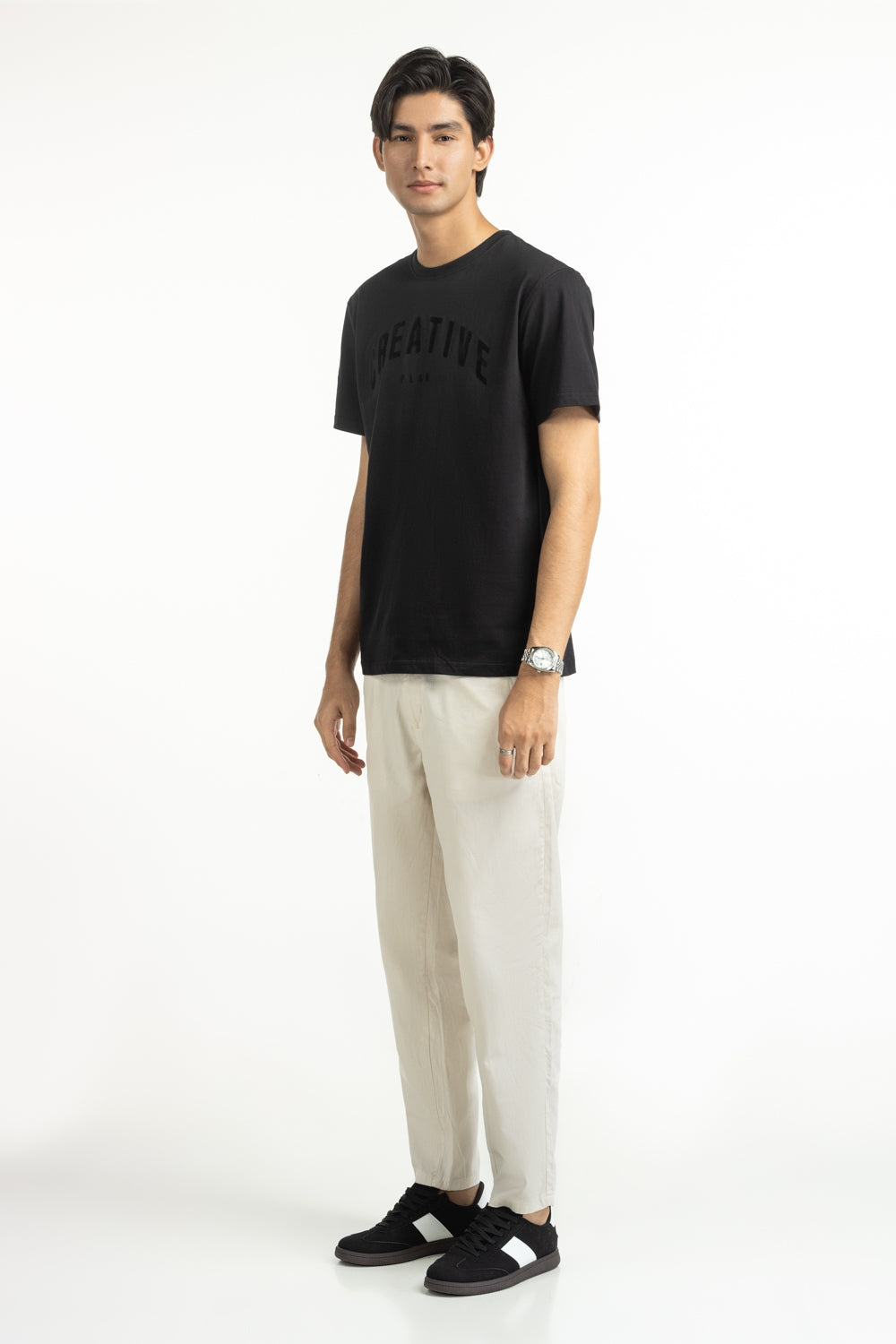 A fusion of street-cool and everyday ease, this black T-shirt is cut in a relaxed silhouette for effortless styling. The pure cotton jersey keeps it lightweight and breathable through warm-weather.