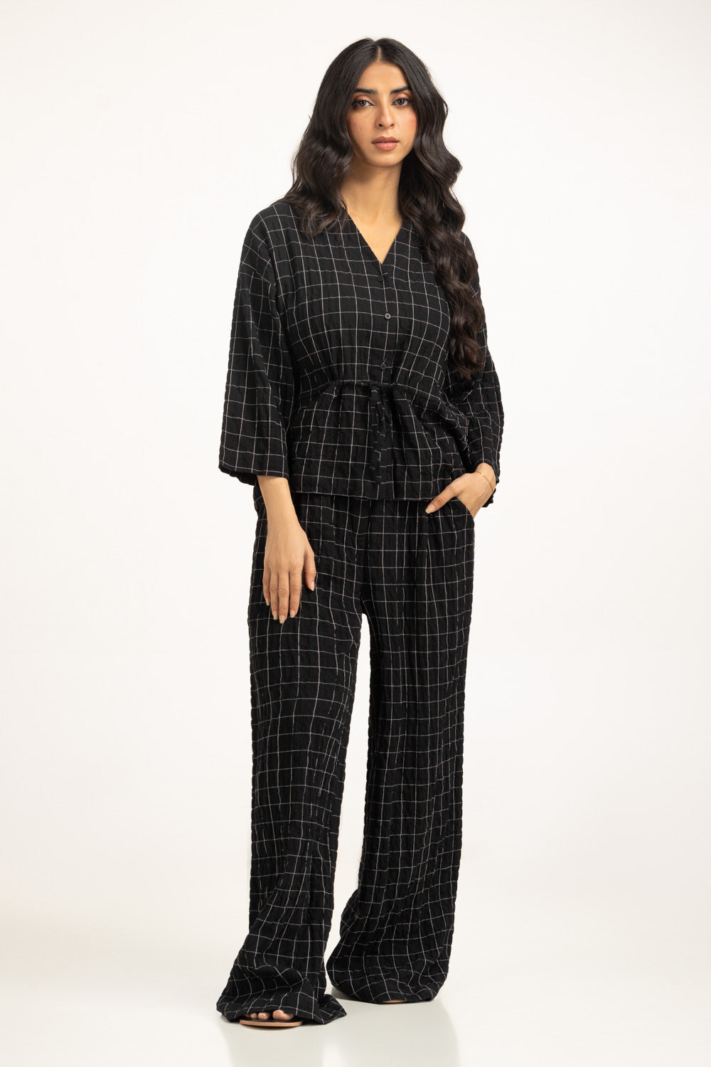 Structured yet fluid, this checkered shirt with a front open design offers a refined fit with an adjustable drawstring waist and a crisp collar. Crafted from 100% cotton, it feels soft yet sturdy. Perfect to pair with the matching trousers to complete the chic look.