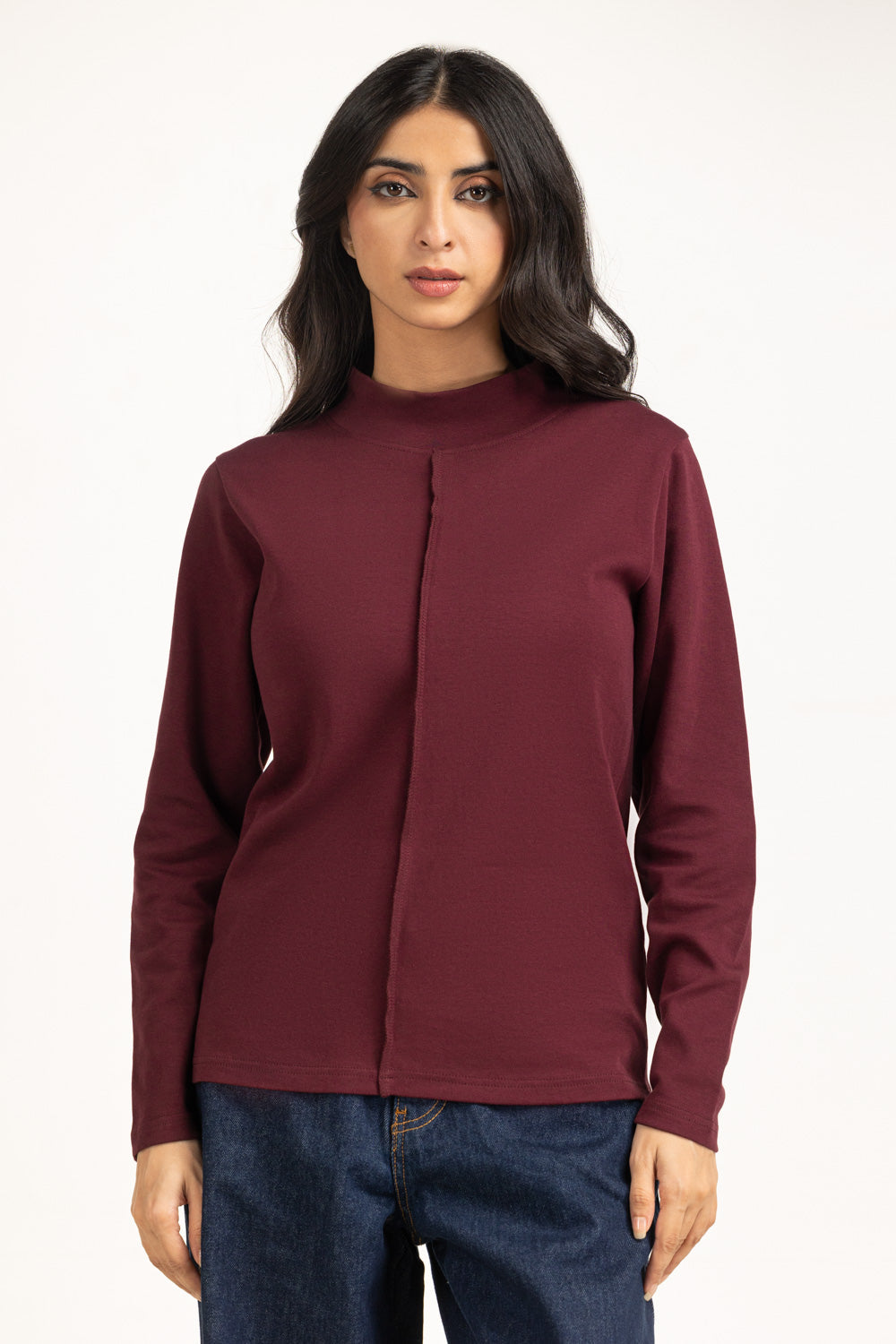 Rendered in a bold hue, this slim-fit top brings understated drama to everyday dressing. The high neckline adds warmth and contemporary elegance. A winter must-have that transitions seamlessly from daytime layering to evening sophistication.