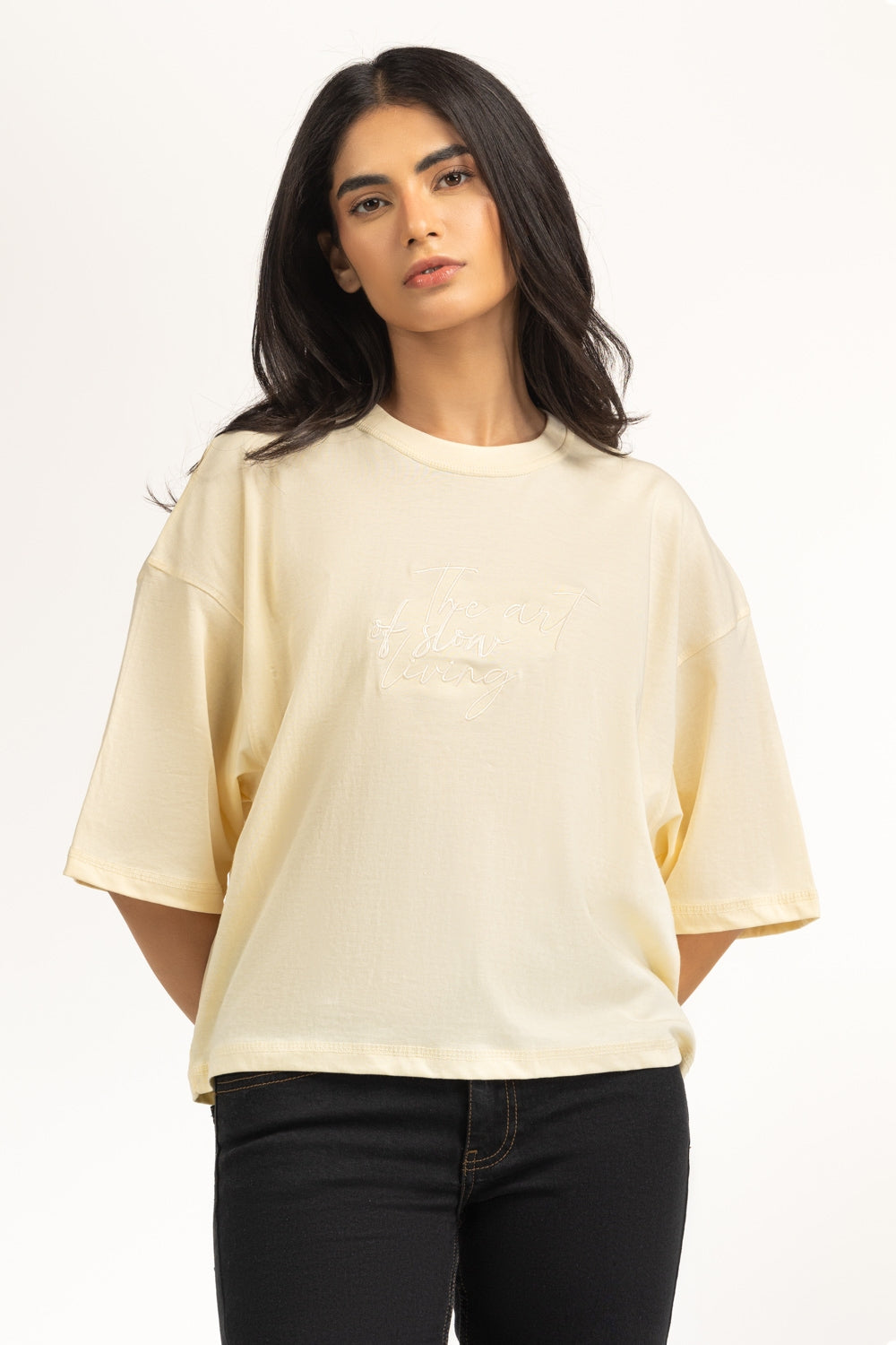 Effortlessly cool, this boxy fit t-shirt combines a soothing cream tone with breathable cotton fabric to keep...